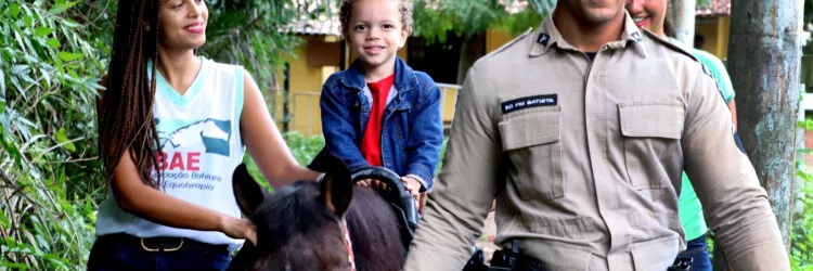 Trabalho de equoterapia desenvolvido por PMBA e associação beneficia crianças e adolescentes com deficiências