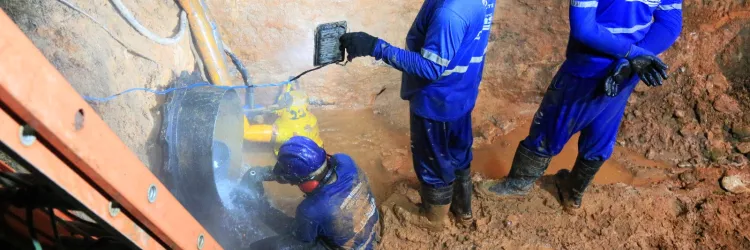 Embasa intensifica trabalho no conserto de linha distribuidora no Vale do Canela para conclusão até a meia-noite deste domingo