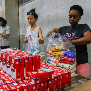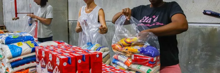 Voluntários montam cestas alimentares para o Bahia Sem Fome