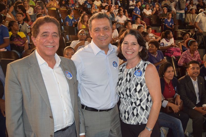 A presidente do CEE/BA, Ana Teixeira, ao lado do governador Rui Costa e do secretário Osvaldo Barreto