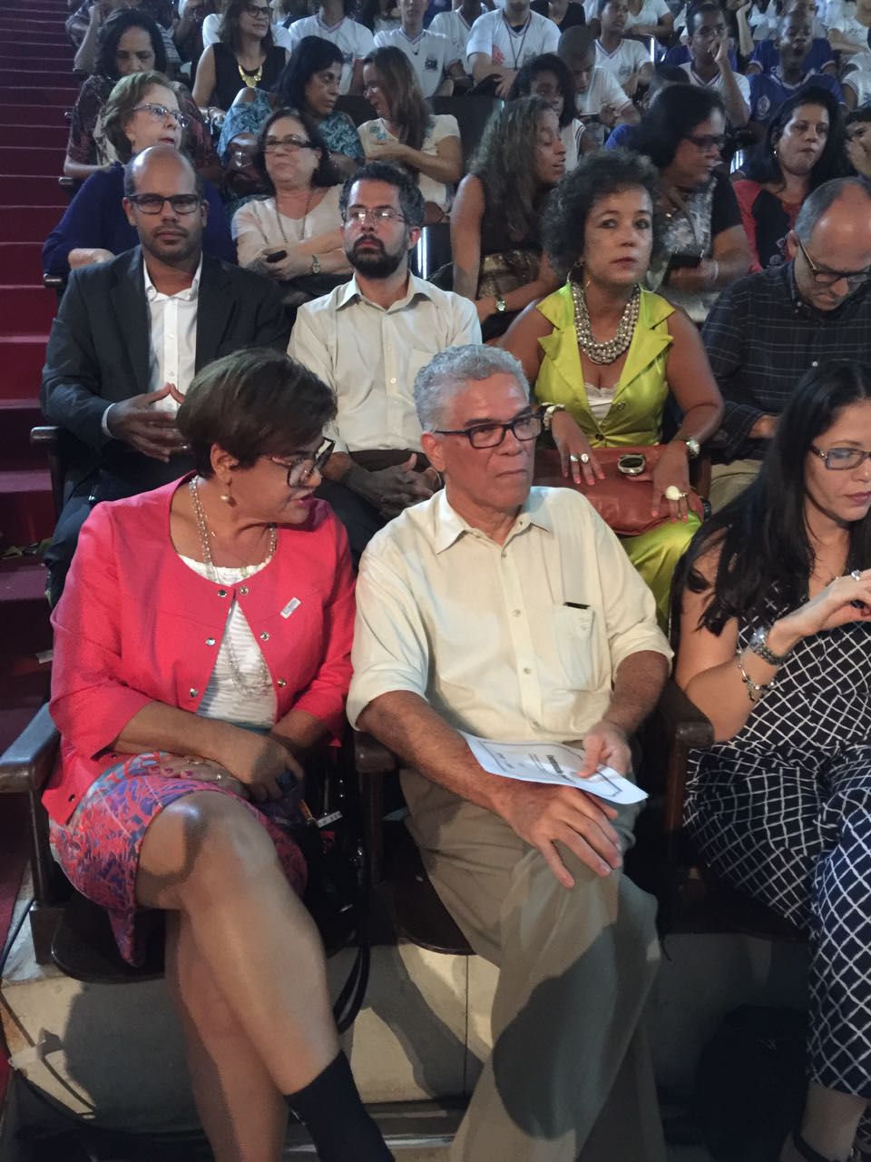 O auditório do Centro Educacional Carneiro Ribeiro (Escola Parque) ficou lotado, na manhã desta quarta-feira (08/02/2017), para a Aula Inaugural do ano letivo 2017, na Rede Pública Estadual de Ensino da Bahia. Para o evento, a icônica unidade escolar do bairro da Caixa D´Água, em Salvador, recebeu o governador Rui Costa e o Secretário da Educação, Walter Pinheiro, que falaram para uma plateia de professores, gestores da educação, pesquisadores, estudantes e jornalistas. O Conselho Estadual de Educação da Bahia (CEE/BA) se fez representado pela sua presidente, Profa. Dra. Anatércia Contreiras, e pela sua diretora, Profa. Mestre Vanusa Pitanga.