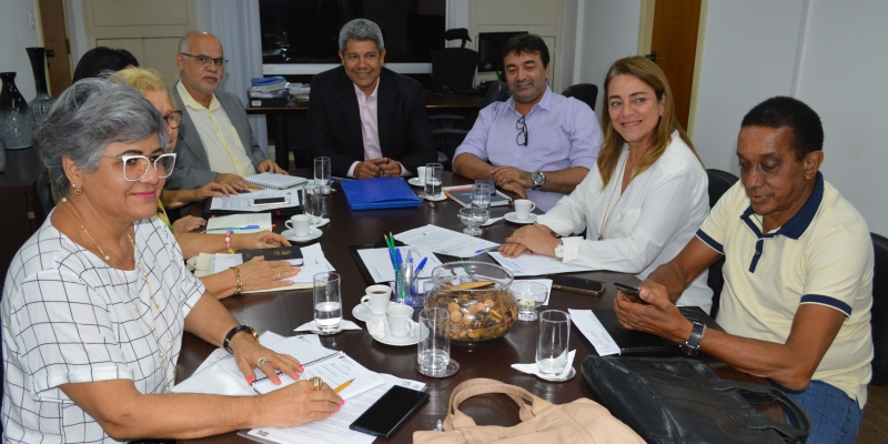 Em reunião realizada na Secretaria da Educação do Estado (SEC), nesta quinta-feira (10), foram discutidos alguns ajustes que serão apresentados nos contratos com as Organizações Sociais (OS), que prestarão serviços administrativos, de forma piloto, em pouco mais de 9% das unidades escolares da rede estadual de ensino. O encontro seguiu a proposta de transparência do Governo do Estado em dialogar com todas as partes interessadas na pauta e contou com a participação do secretário da SEC, Jerônimo Rodrigues; do chefe de gabinete da SEC, Cezar Lisboa; da presidente da Comissão de Educação, Ciência, Tecnologia e Serviço Público da Assembleia Legislativa da Bahia (ALBA), a deputada estadual Fabíola Mansur; da coordenadora do Fórum Estadual de Educação da Bahia (FEEBA), Alessandra Assis; do presidente da Associação dos Professores Licenciados do Brasil – Secção da Bahia (APLB Sindicato), Rui Oliveira; da presidente do Conselho Estadual de Educação (CEE-BA), Anatércia Contreiras; e do coordenador de articulação de projetos para a Educação, Hélder Amorim.