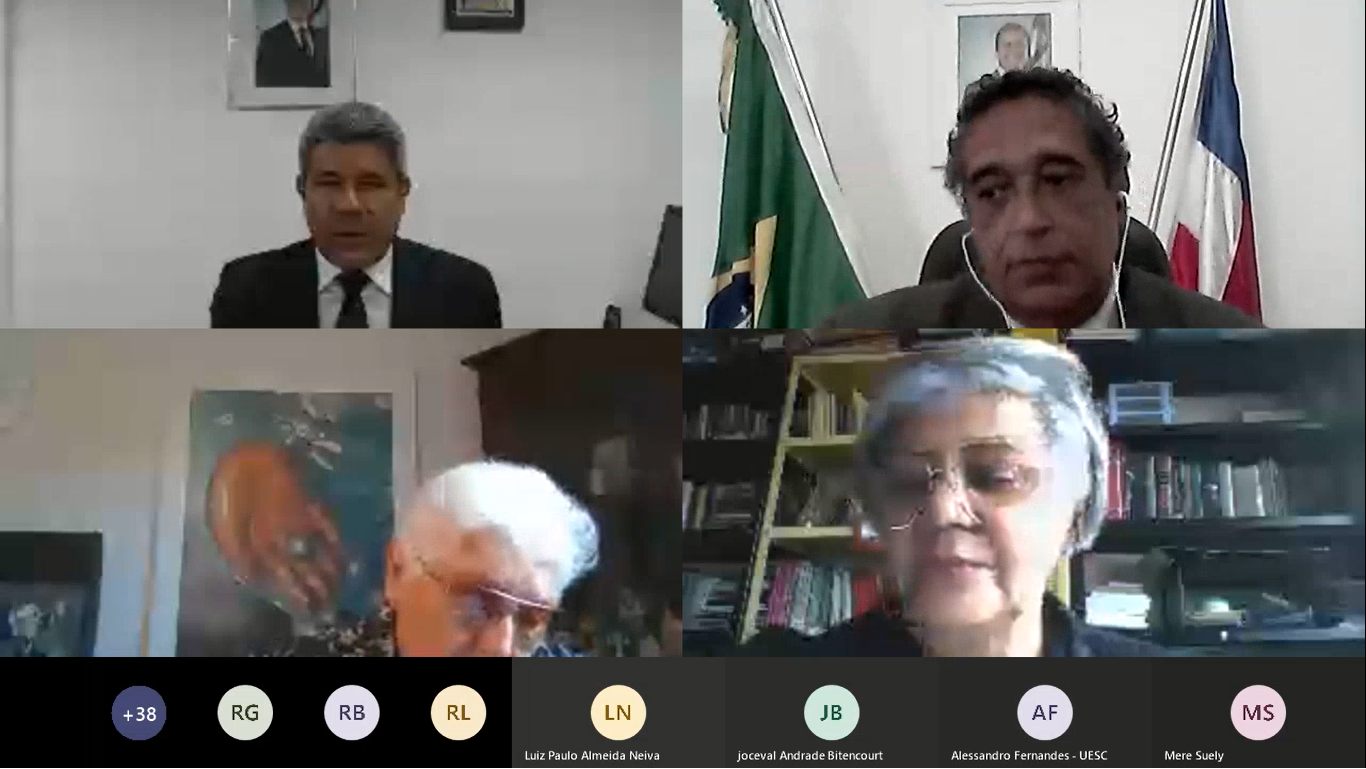 O secretário da Educação do Estado da Bahia, Jerônimo Rodrigues, deu posse a Paulo Gabriel Soledade Nacif e a Roberto Gondim Pires, respectivamente presidente e vice-presidente do Conselho Estadual de Educação da Bahia (CEE/BA) para o biênio 2020-2022. A Sessão Especial de Posse, marcada por despedidas e expectativas, foi realizada por videoconferência, na tarde desta quinta-feira (09), devido ao isolamento social de contenção ao Coronavírus (COVID-19).