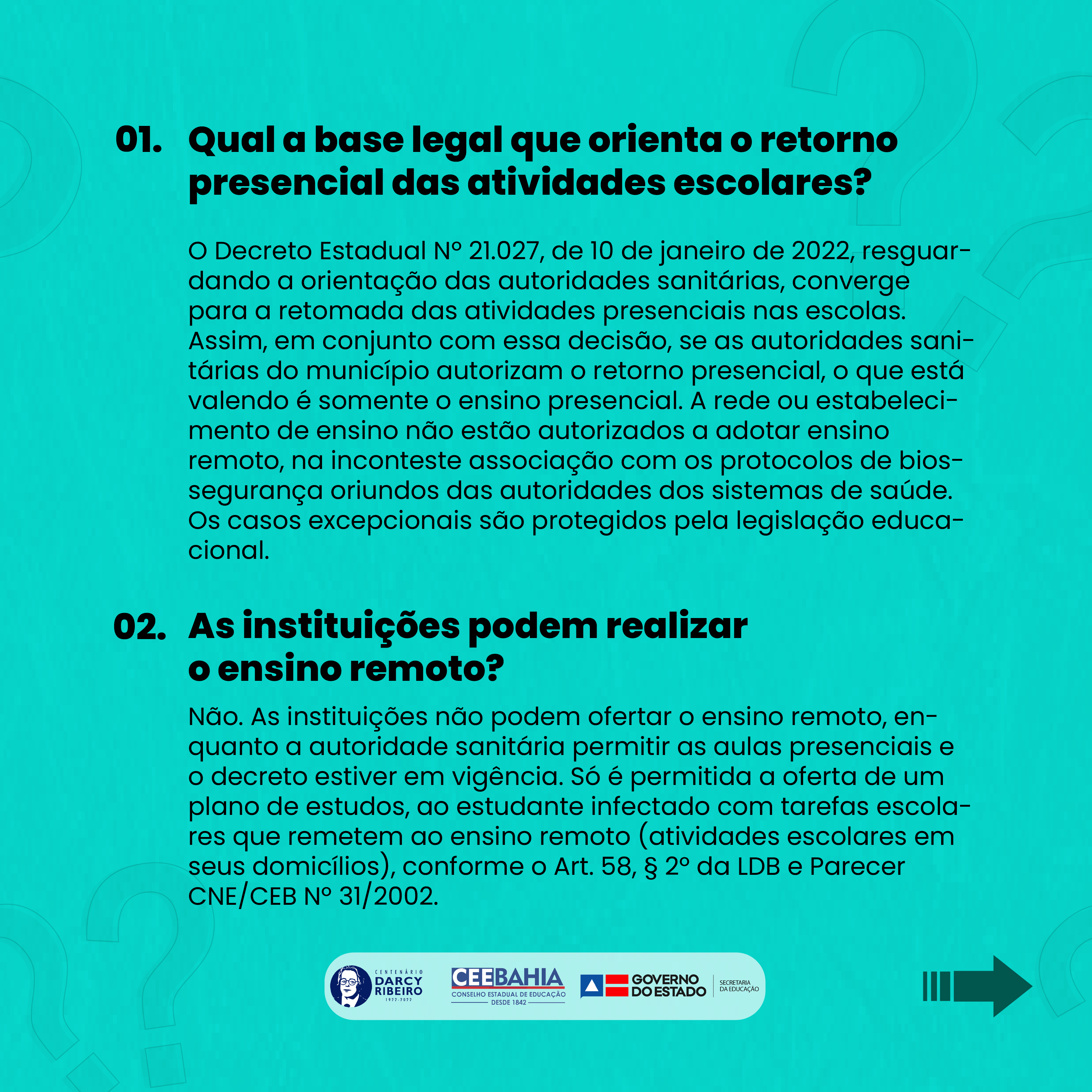 1. Qual a base legal que orienta o retorno presencial das atividades escolares?