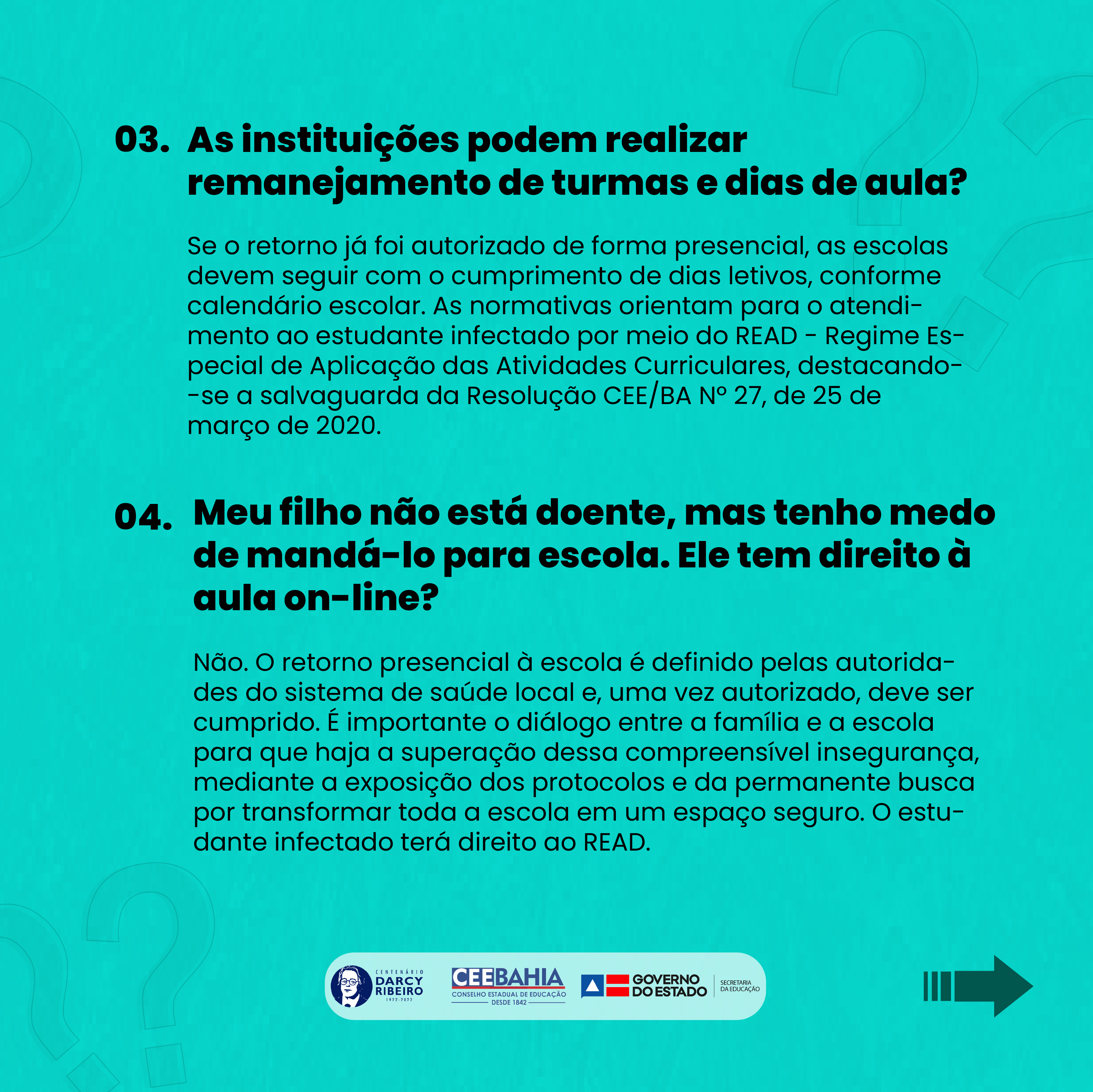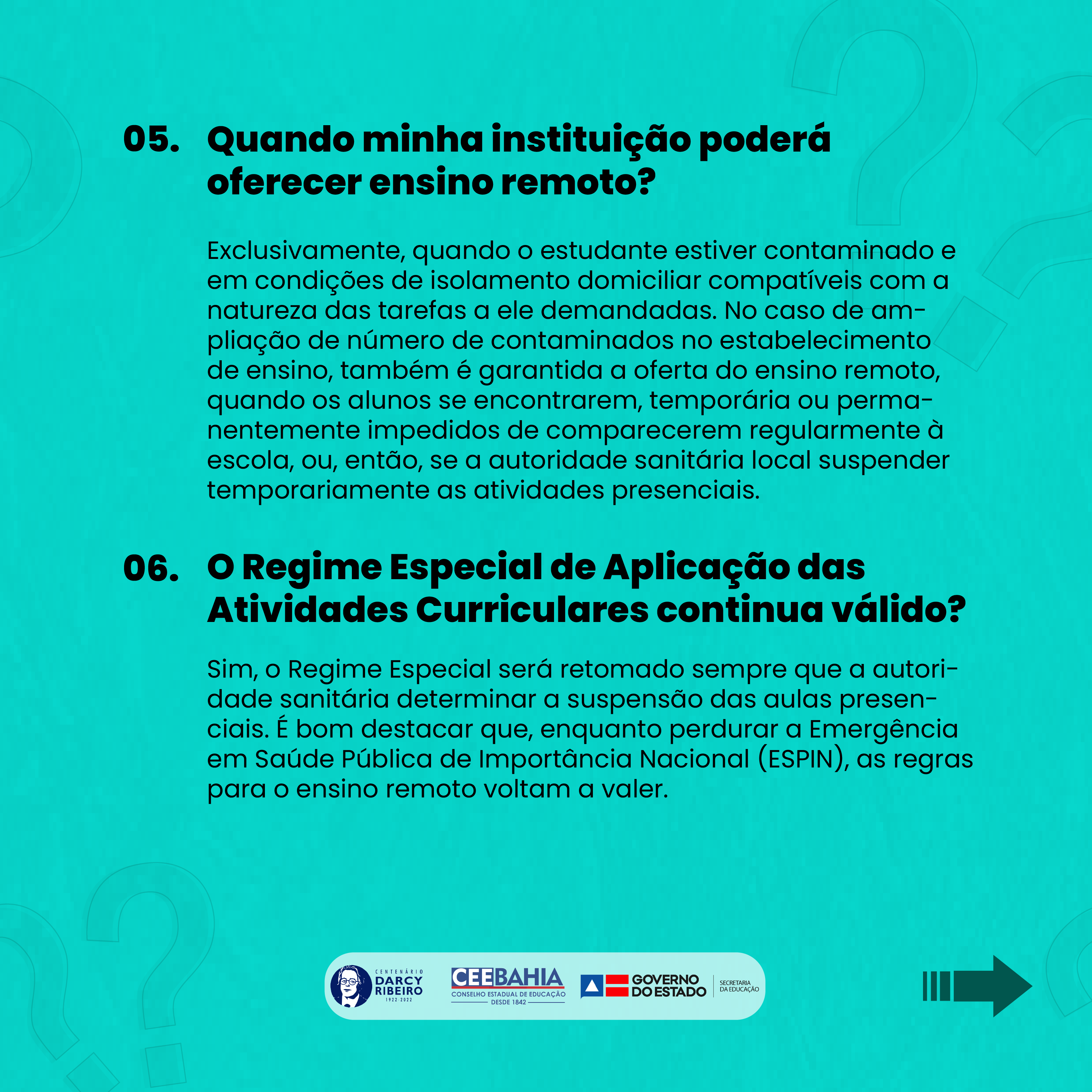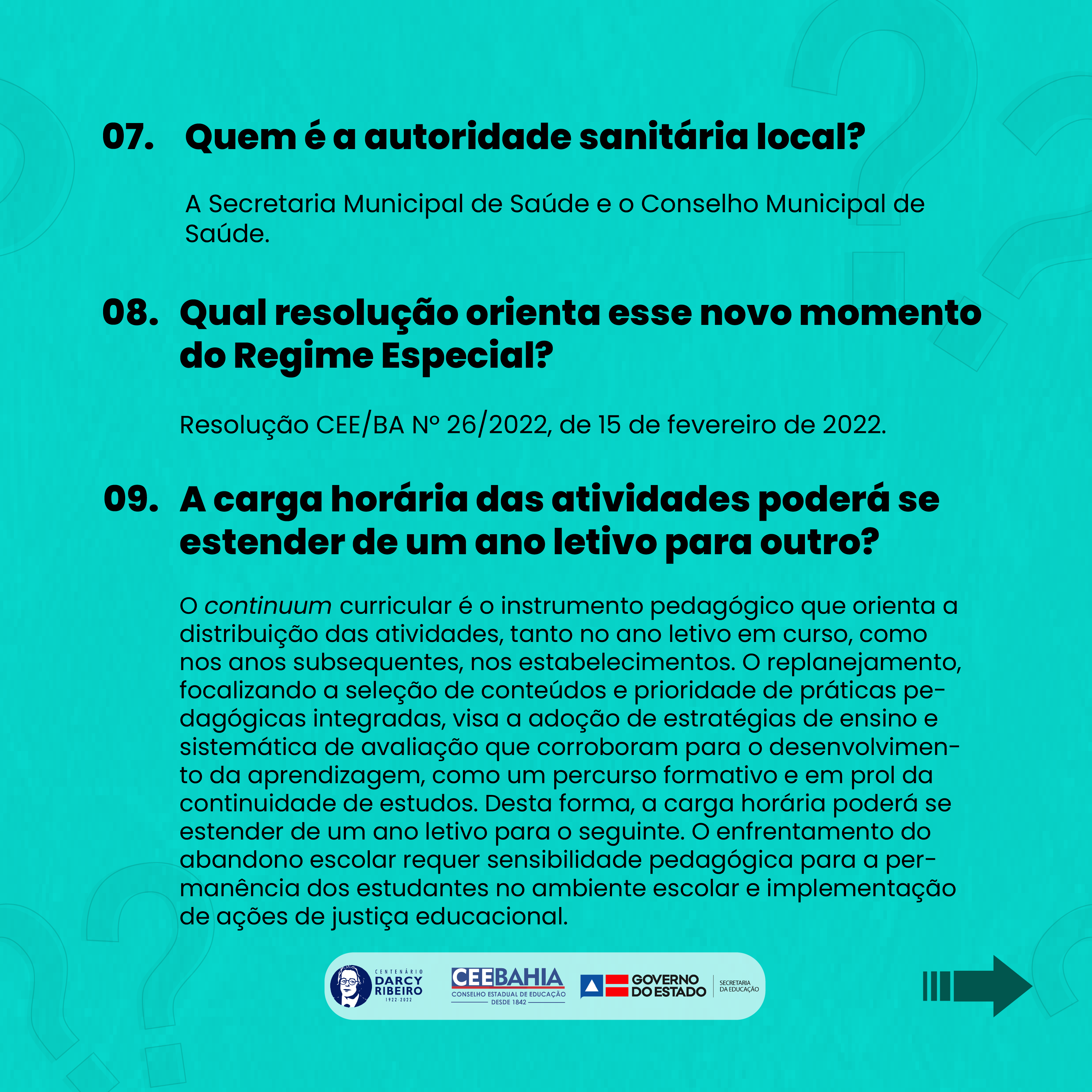 Resolução CEE/BA Nº 48/2020, de 6 de outubro de 2020. Resolução CEE/BA Nº 44/2021, de 24 de agosto de 2021. Resolução CEE/BA Nº 26/2022, de 15 de fevereiro de 2022.
