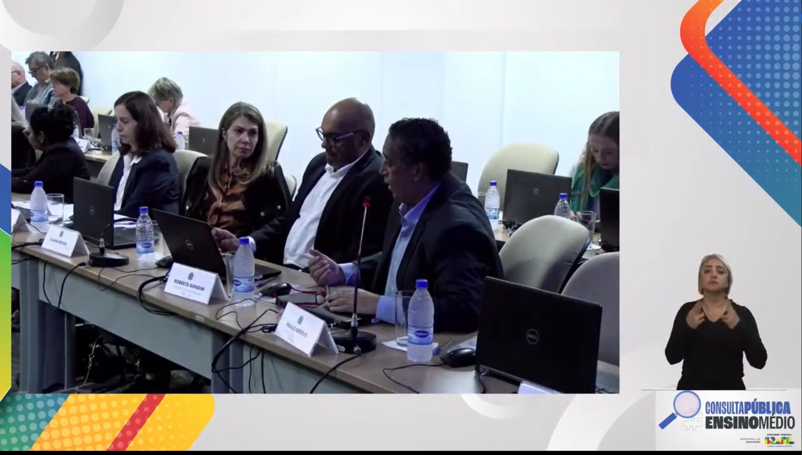 “É mais que bem-vinda essa consulta pública. Não há dúvidas de que precisávamos e precisamos de mudanças no ensino médio. Existem diversos aspectos no processo de implementação e das suas doutrinas que devem permanecer, mas eu não tenho dúvidas que, na articulação dos sistemas de ensino, se não estabelecermos diretrizes e parâmetros mais firmes para os itinerários e as eletivas, teremos uma incapacidade de gerir o Sistema Nacional de Educação”, contribuiu o presidente Paulo Gabriel durante o encontro.