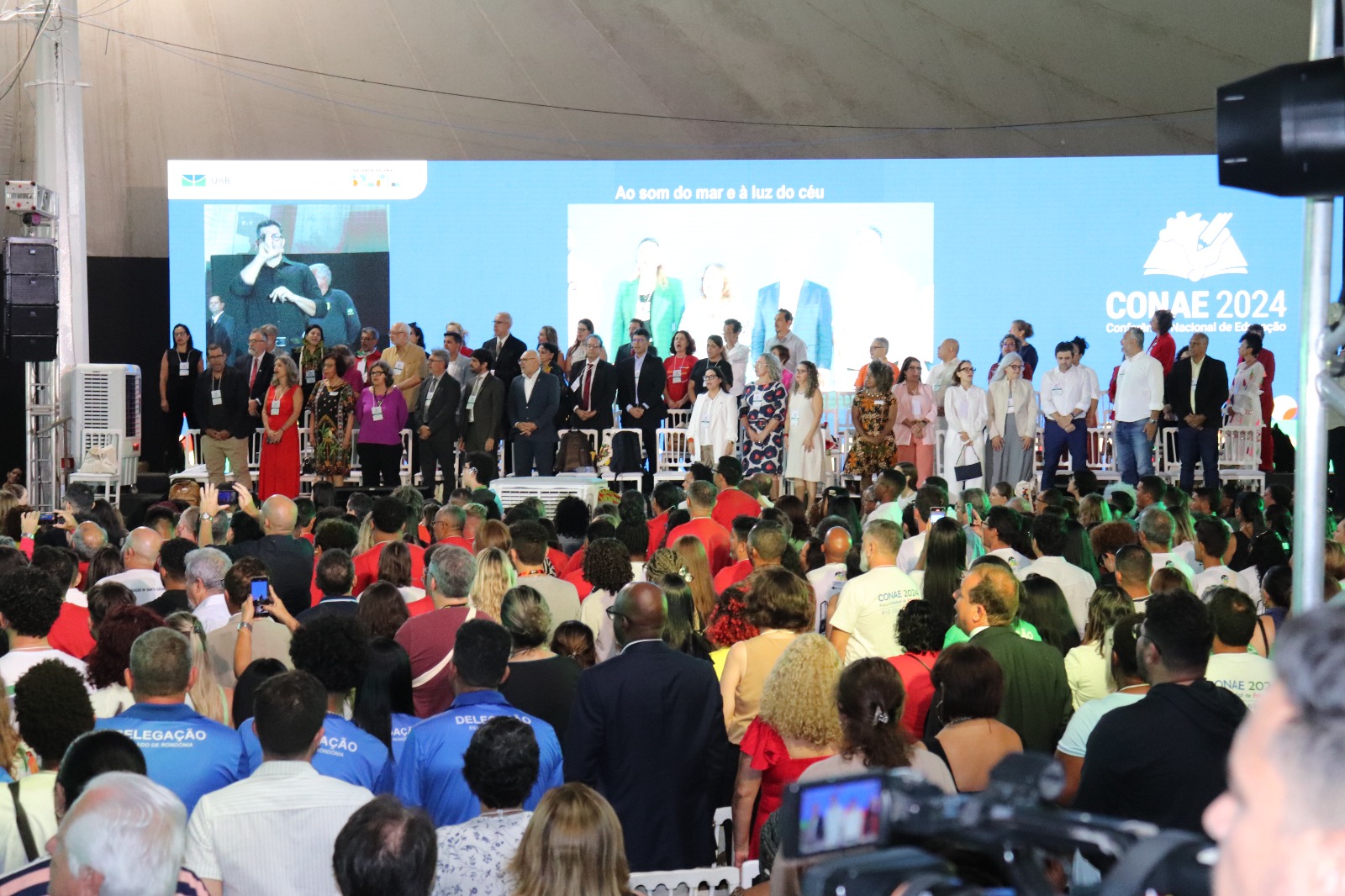 Ministros, com destaque para o da pasta da Educação (MEC), Camilo Santana; integrantes do Fórum Nacional de Educação (FNE) e seu coordenador Heleno Araújo; o presidente do Conselho Nacional de Educação (CNE), Luiz Roberto Liza Curi, entre outras autoridades prestigiaram o momento da abertura que destacou culturalmente o Nordeste e a importância das referências nordestinas para a reconstrução da educação.