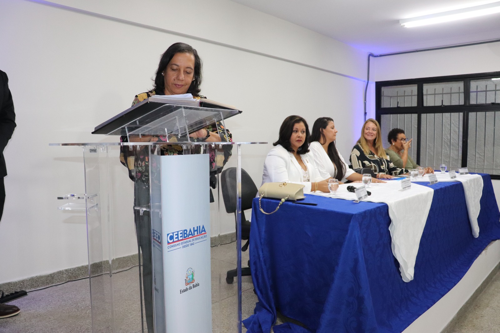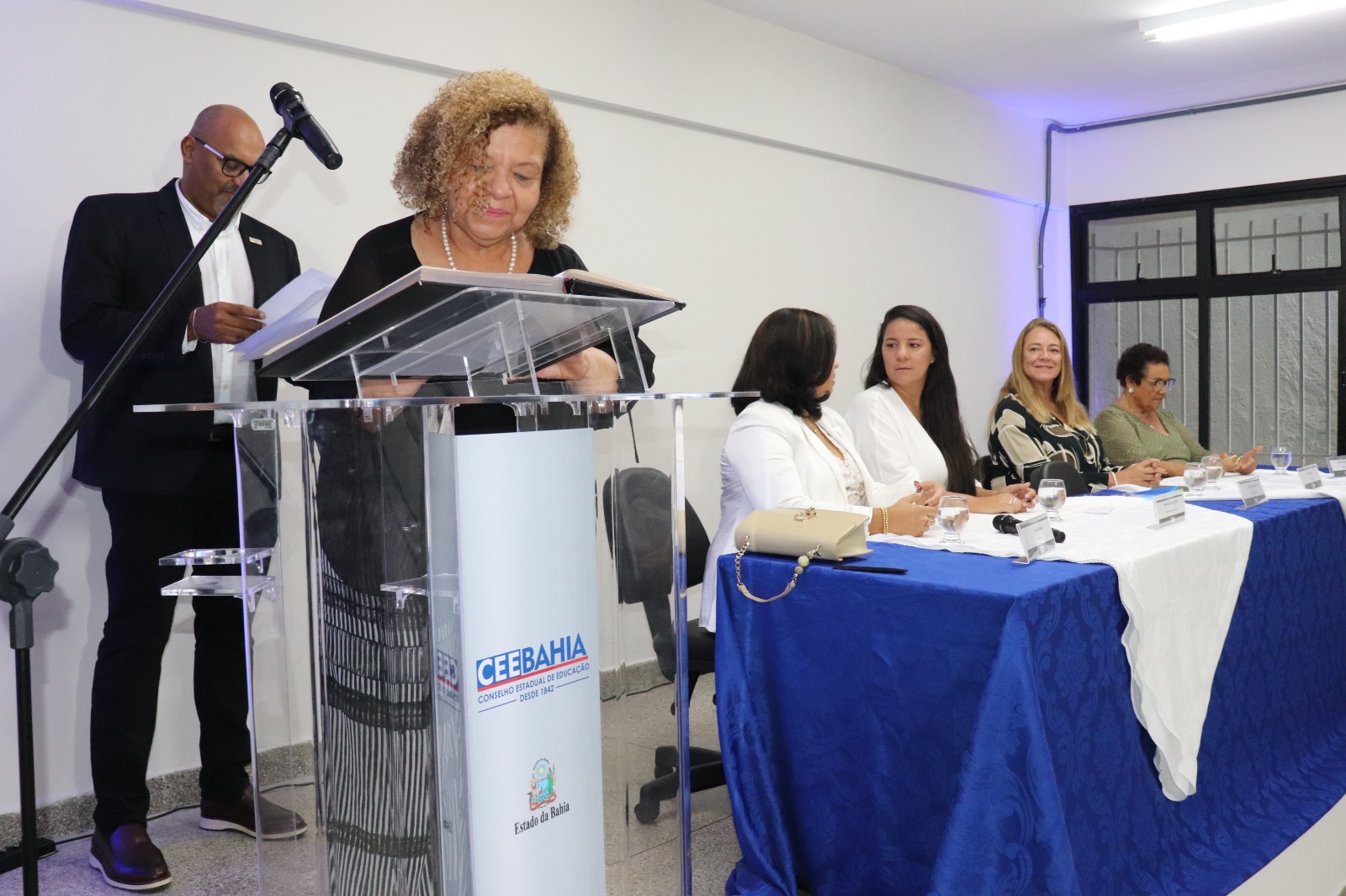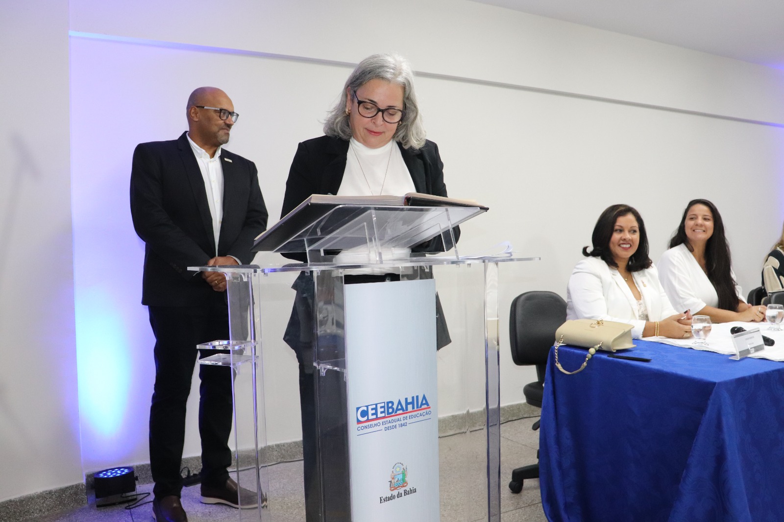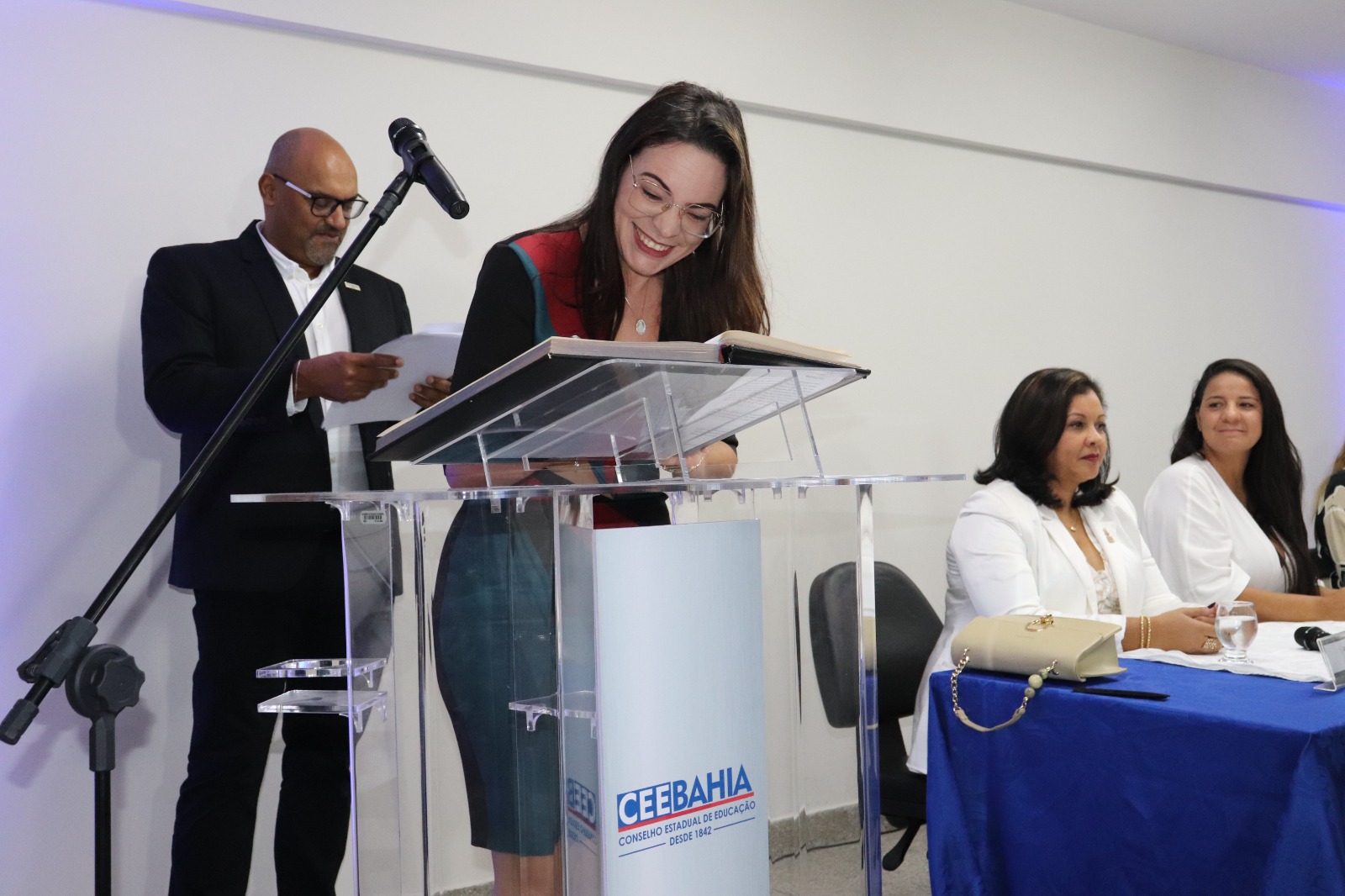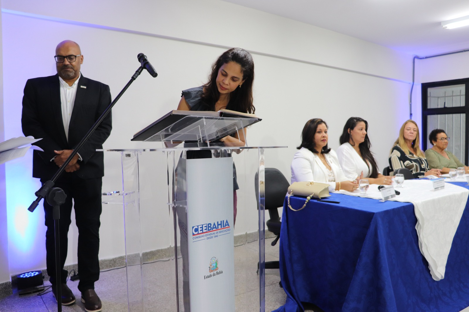 Um novo ciclo de trabalho para o fortalecimento da Educação na Bahia teve início na manhã desta segunda-feira (22), com a posse dos 18 novos membros titulares e suplentes do Conselho Estadual da Educação na Bahia (CEE-BA). Nos próximos quatro anos (2024-2028), eles, ao compor o Conselho Pleno de 24 conselheiros, serão responsáveis por acompanhar, analisar, sugerir e orientar os caminhos da gestão da Educação do Estado. A cerimônia aconteceu no Auditório Luiza Bairros do Complexo da Gestão Democrática da Educação, no bairro do Costa Azul, Salvador, com a presença da secretária da Educação do Estado, Rowenna dos Santos Brito; do presidente e da vice-presidente do CEE, Roberto Gondim Pires e Dinalva Melo do Nascimento, respectivamente; da reitora da Universidade do Estado da Bahia (UNEB), Adriana Marmori; e da deputada estadual Fabíola Mansur, além de educadores, familiares e representantes da sociedade civil.