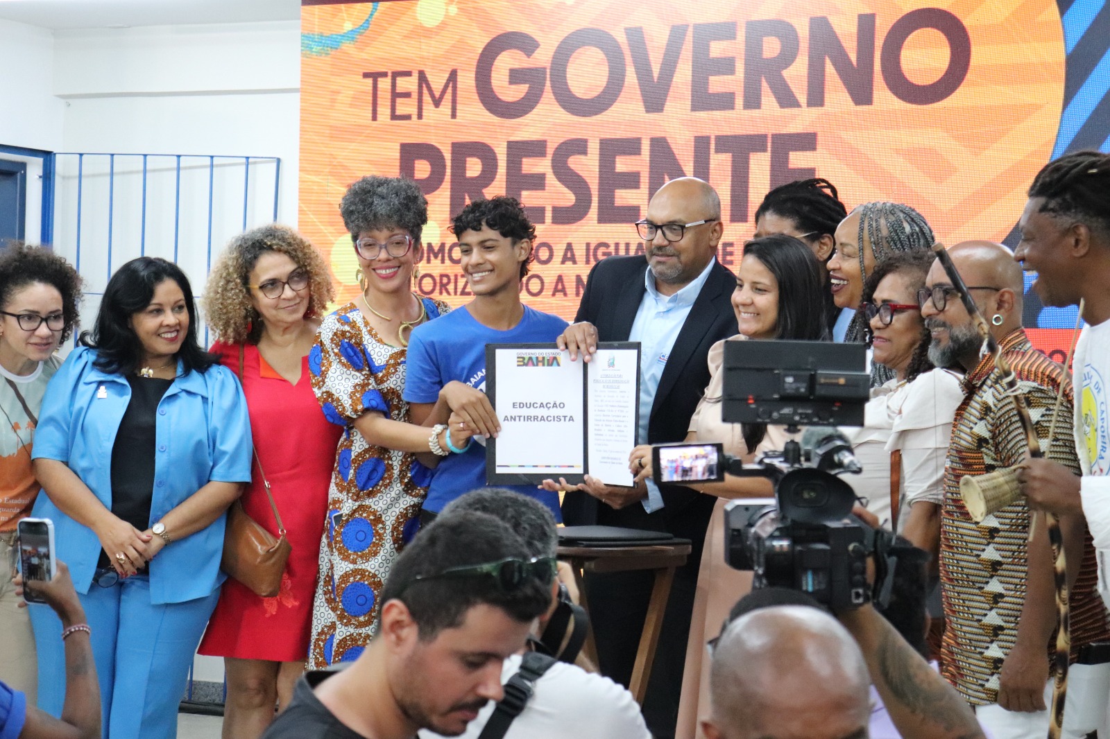 A Resolução CEE n° 97/2024, que visa promover uma educação antirracista, valorizar a diversidade étnico-racial e cultural, e combater o racismo estrutural e institucional no sistema educacional da Bahia, foi homologada nesta terça-feira (05), em um evento repleto de significado, realizado no Colégio Estadual de Tempo Integral Zumbi dos Palmares, no bairro Tancredo Neves, em Salvador. O ‘Novembro Negro 2024’ trouxe diversas entregas e ações de valorização da ancestralidade e de garantia da igualdade, entre as quais a normativa do Conselho Estadual de Educação da Bahia (CEE-BA) que estabelece diretrizes para o ensino da História e Cultura Afro-Brasileira, Africana, Indígena e Quilombola nas escolas do estado, reafirmando o compromisso do Governo do Estado com uma educação que respeita e celebra a diversidade, e promove uma sociedade mais justa e igualitária.