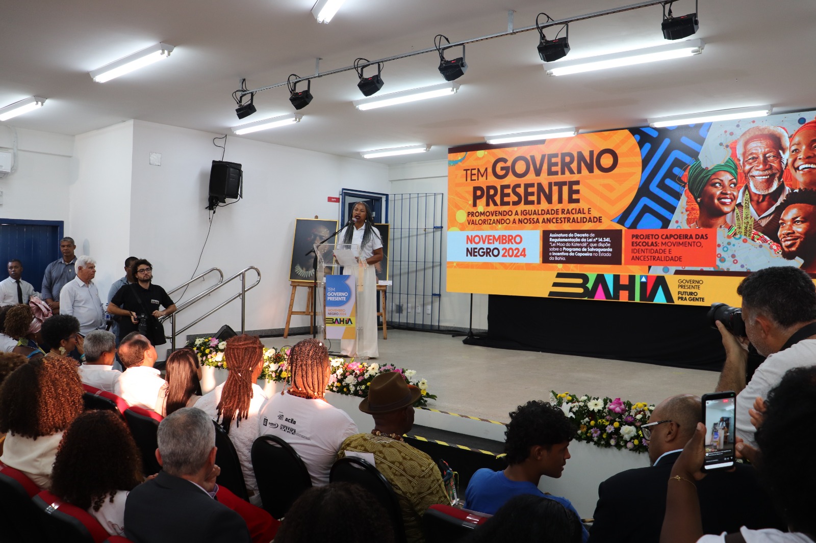 A secretária Rowenna Brito também ressaltou a relevância da iniciativa e a importância de entregar, entre as ações, a Resolução que não apenas busca combater o racismo estrutural, mas também promover uma identidade cultural rica e plural entre os estudantes baianos. “Estamos celebrando o Novembro Negro: um mês que celebra a cultura negra e as lutas por igualdade, com ações concretas. A educação é a chave para a transformação social. Com esta resolução, estamos garantindo que a história das populações afro-brasileiras e indígenas seja ensinada de forma digna e respeitosa em nossas escolas. Então, é um ato de resistência e de reafirmar o compromisso do Governo do Estado com o povo da Bahia”.