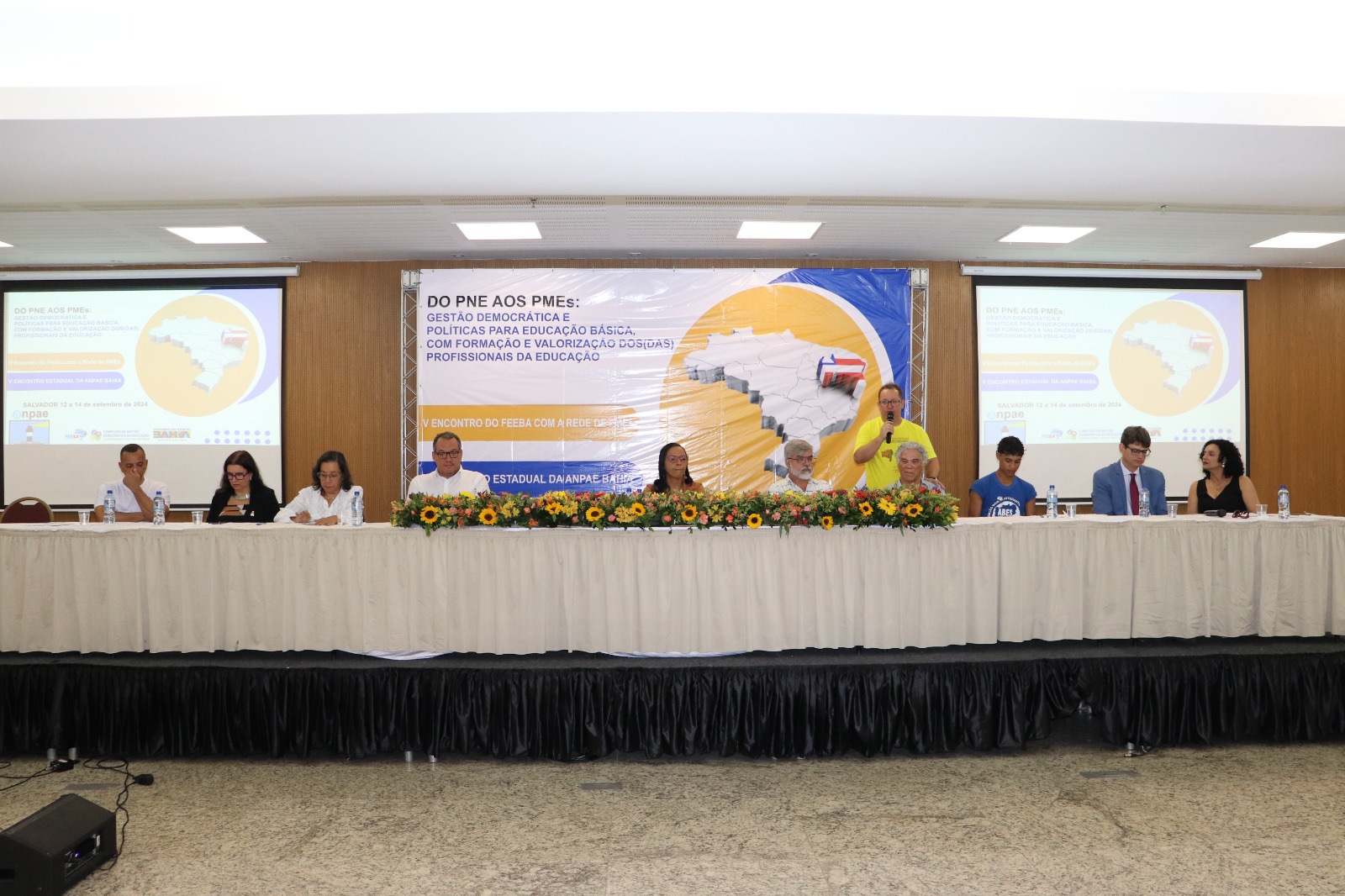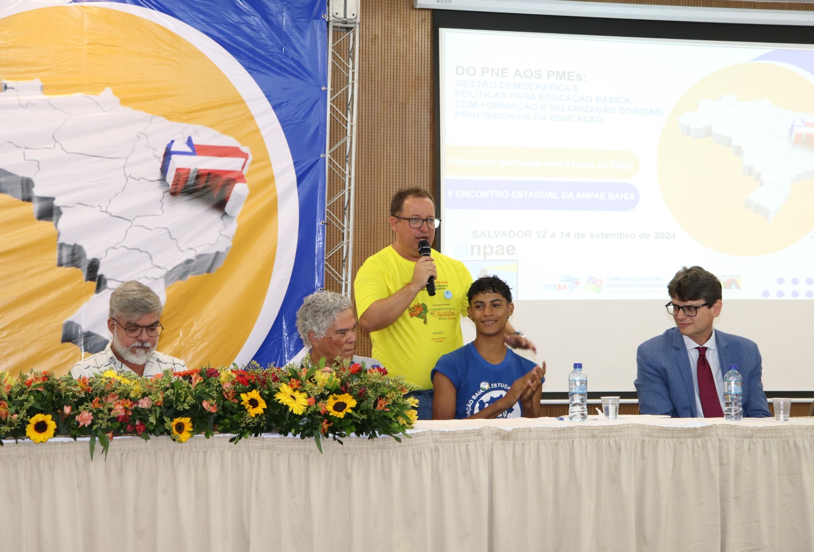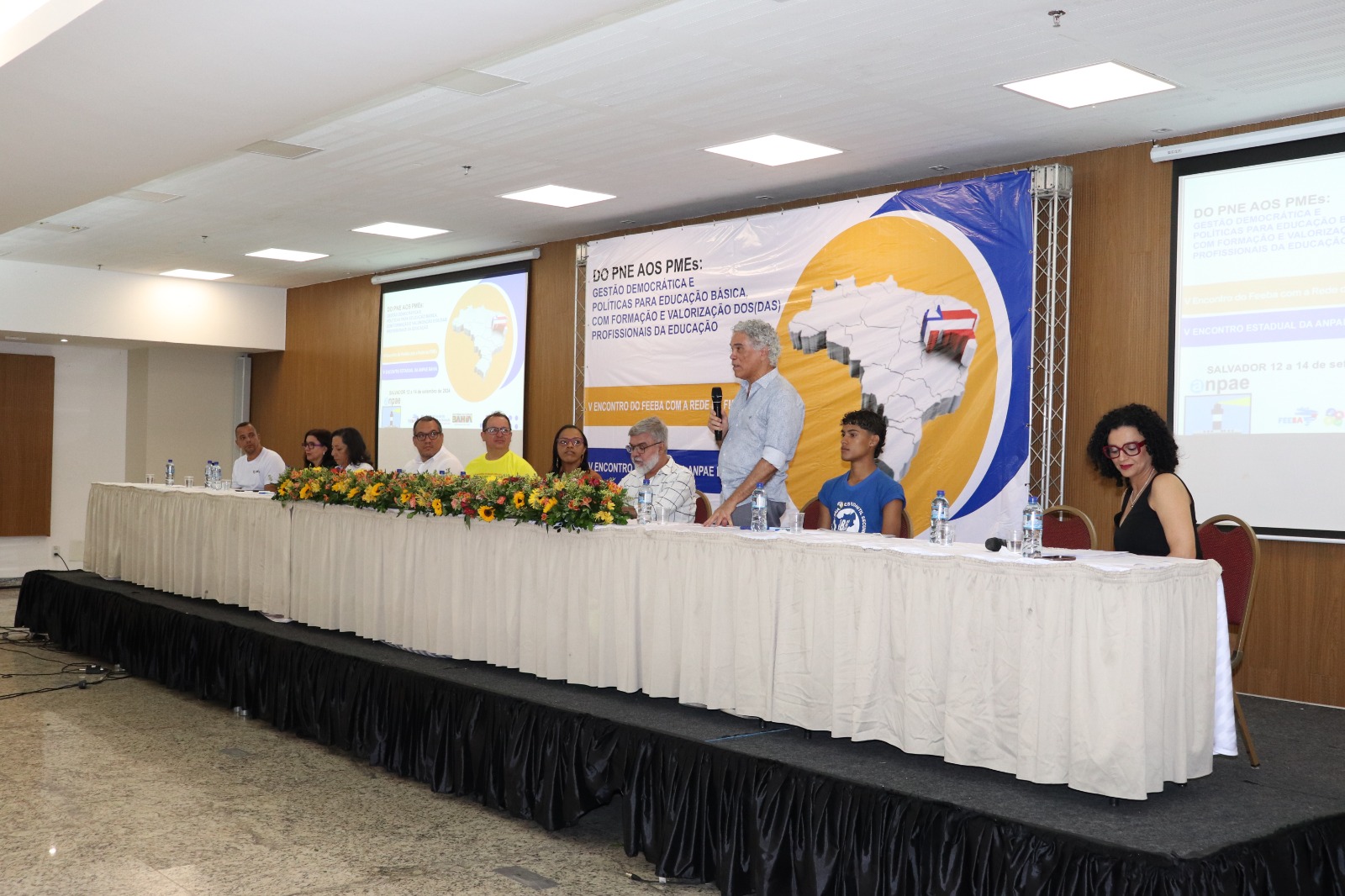 Durante a mesa de abertura, o conselheiro Nildon Pitombo, representando o presidente do CEE-BA, Roberto Gondim, ressaltou a importância de fortalecer as políticas de gestão democrática e a necessidade de se avançar na implementação de políticas que garantam a formação continuada e a valorização dos profissionais da educação. “Precisamos encarar a gestão democrática não como uma mera formalidade, mas como o alicerce para a construção de uma educação verdadeiramente inclusiva e de qualidade. A valorização dos educadores, tanto no aspecto salarial quanto na formação, é um dos pilares para atingirmos esse objetivo", afirmou Pitombo.
