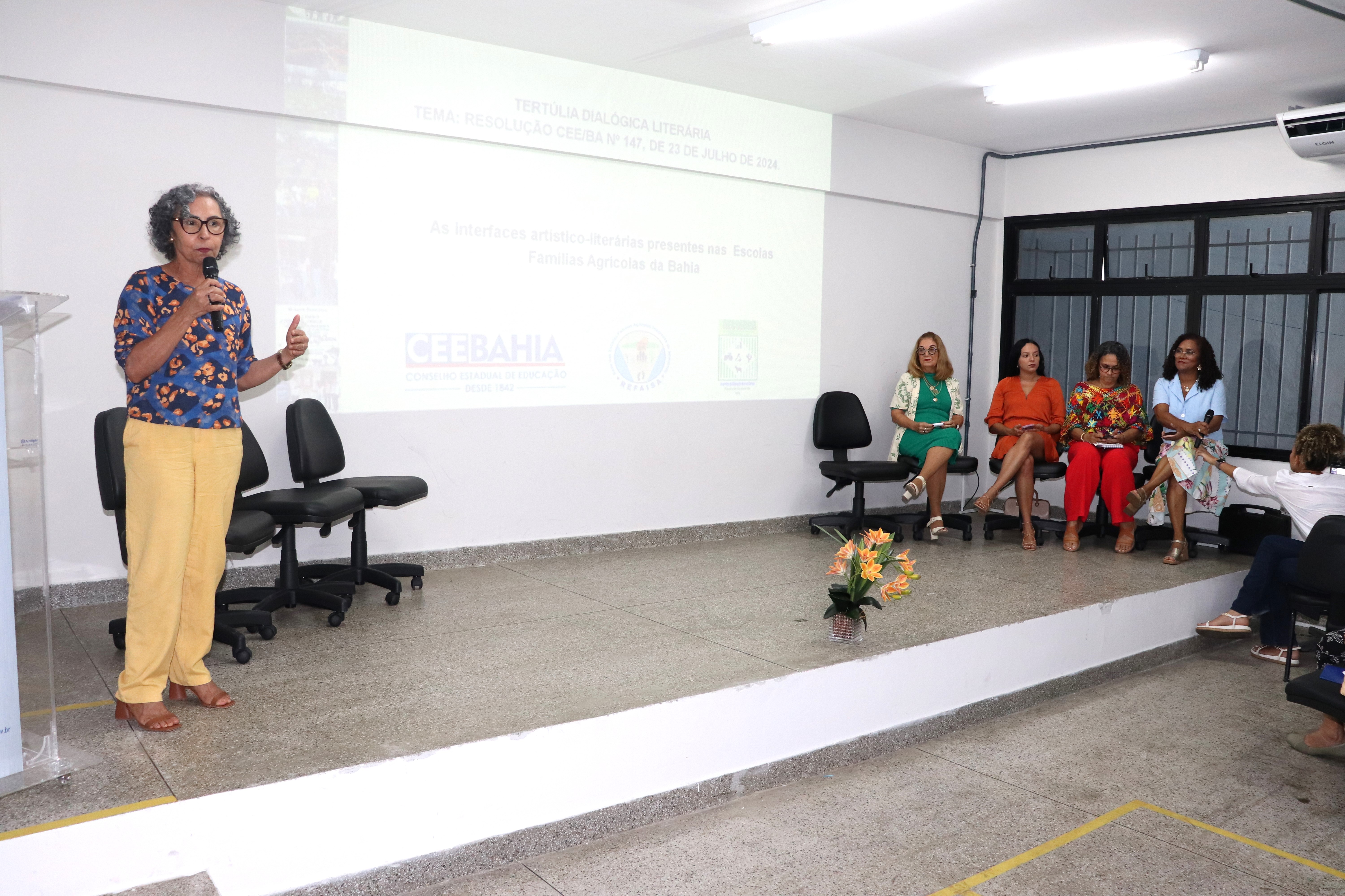 O Conselho Estadual de Educação da Bahia (CEE-BA) realizou, nesta terça-feira, 11 de março de 2025, a Tertúlia Dialógica Literária com foco na discussão sobre a Resolução Nº 147, de 23 de julho de 2024. O encontro aconteceu no Auditório Luiza Bairro, na sede do CEE-BA, em Salvador, e contou com a participação de conselheiros, educadores e das convidadas da Universidade Federal de Feira de Santana (UEFS).