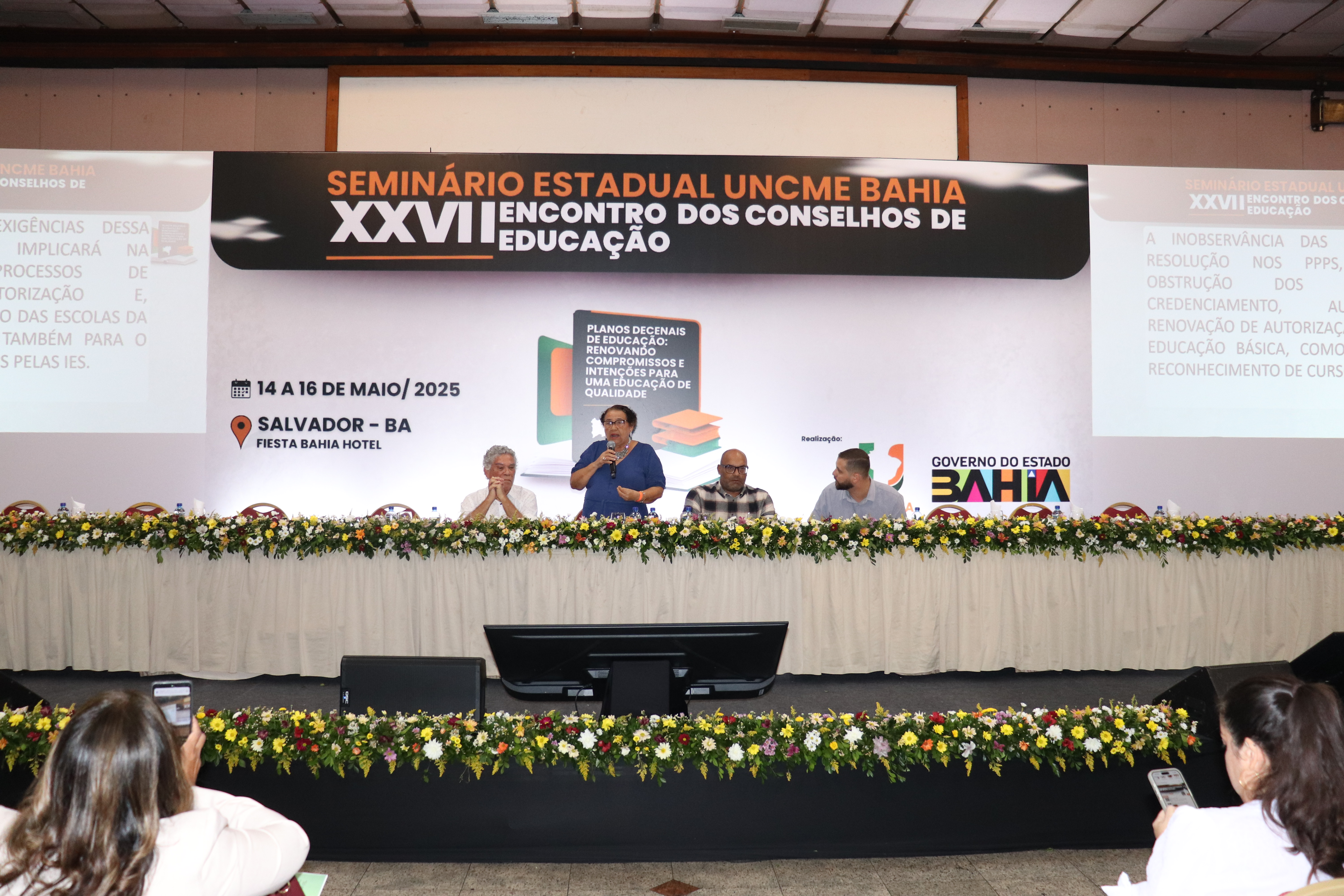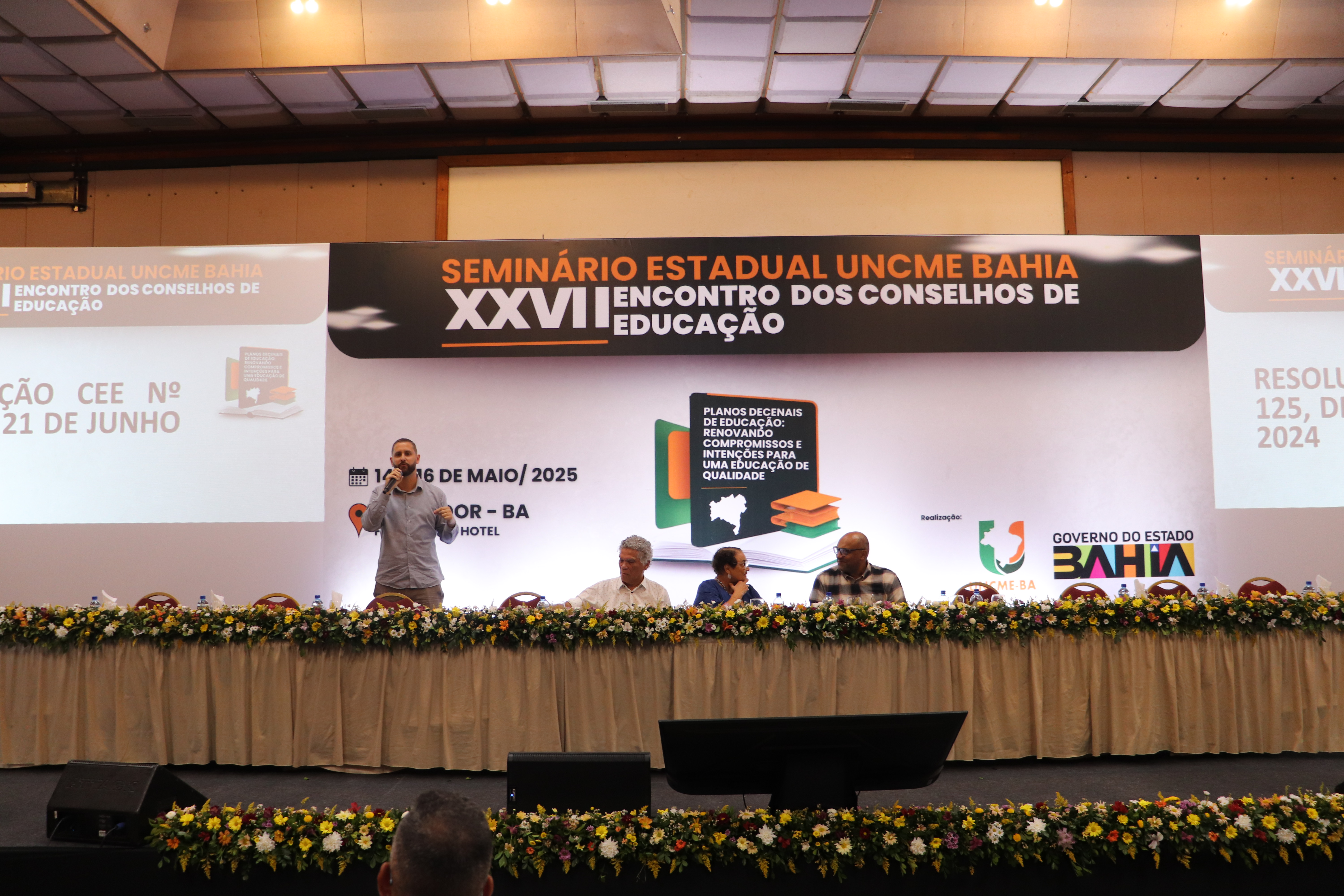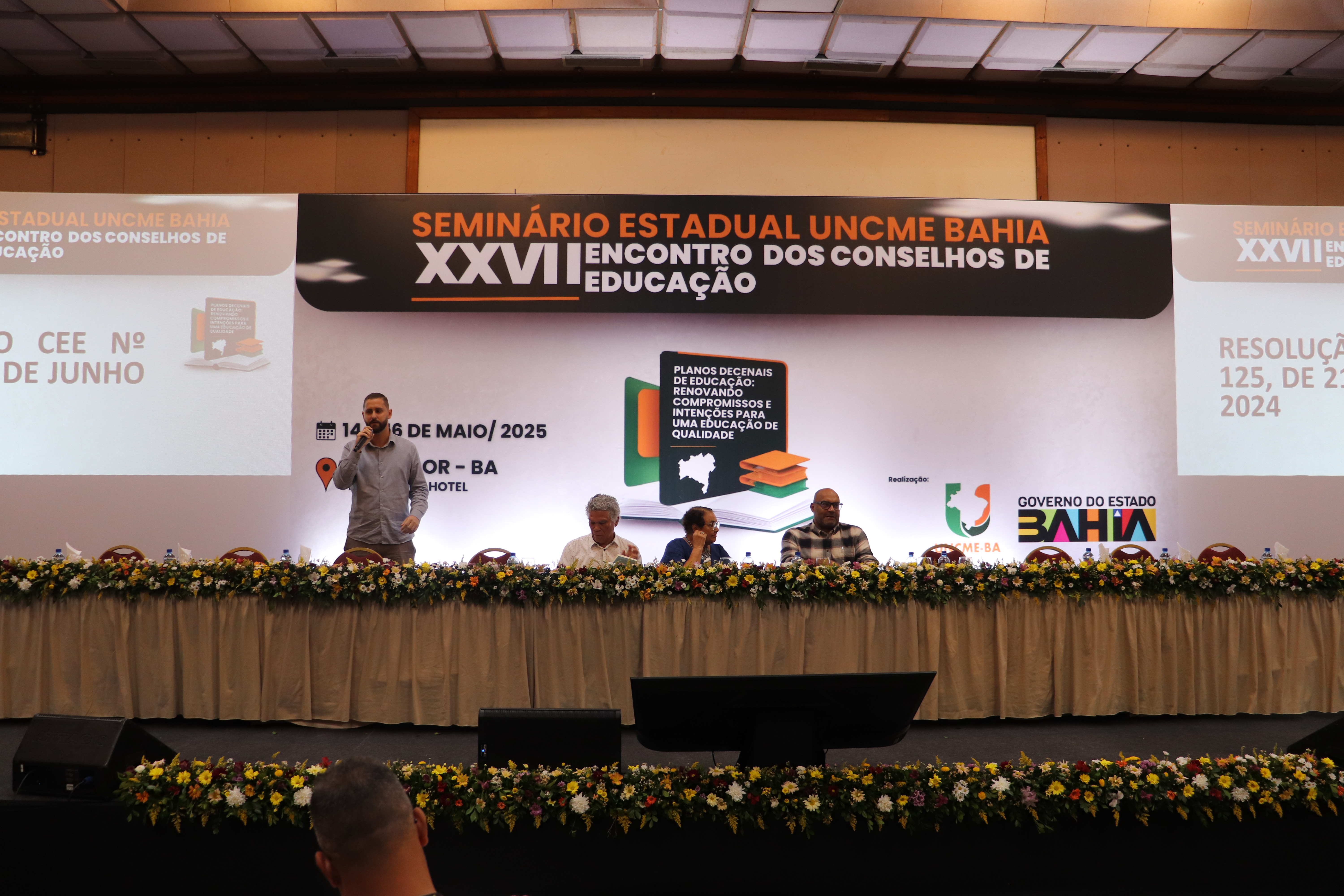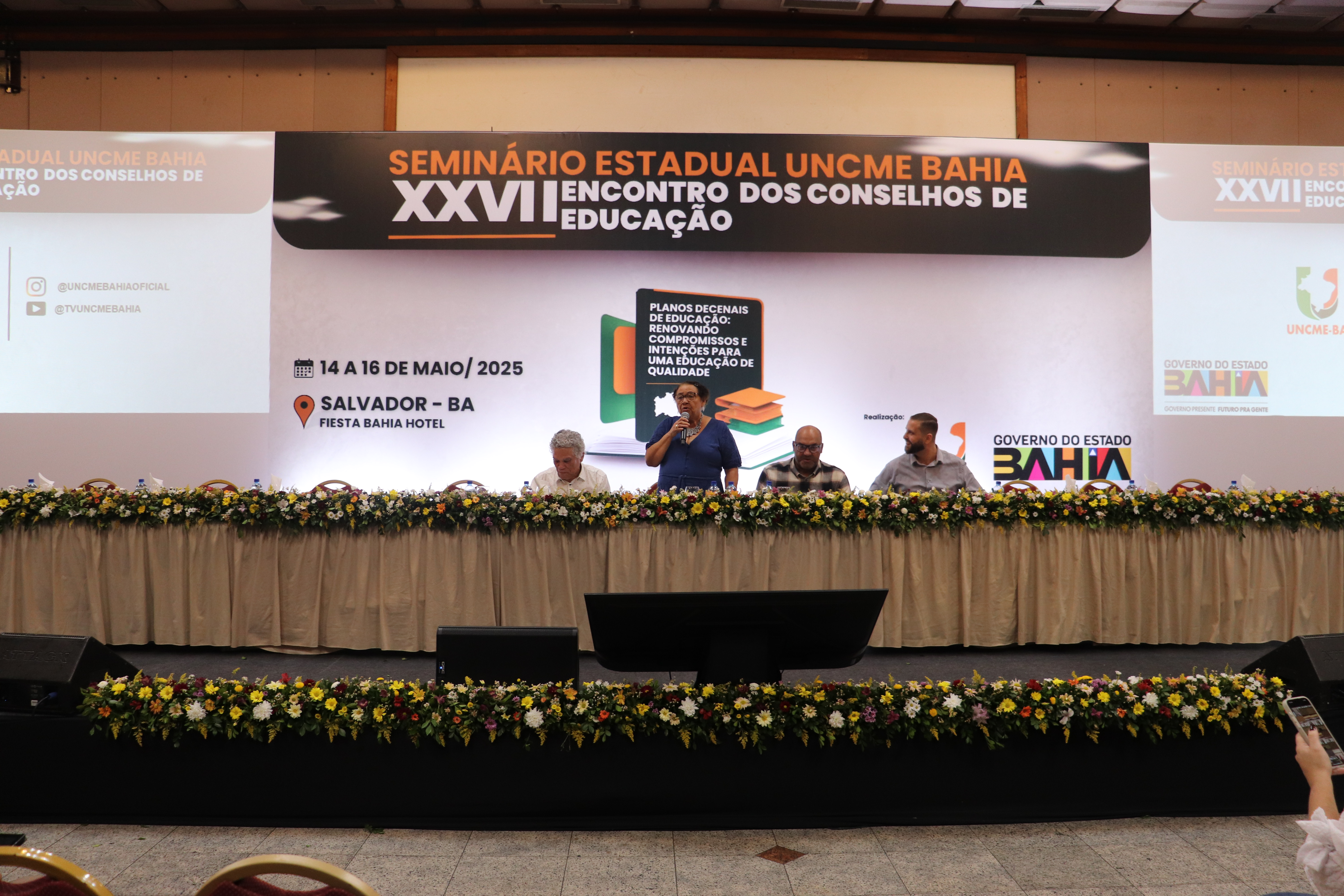O Conselho Estadual de Educação da Bahia (CEE-BA) participou da 27ª edição do Seminário Estadual da UNCME Bahia, realizado entre os dias 14 e 16 de maio no Fiesta Convention Center, em Salvador. O evento reuniu representantes de conselhos municipais de diversas regiões do estado e reafirmou o compromisso coletivo pela qualidade da educação.