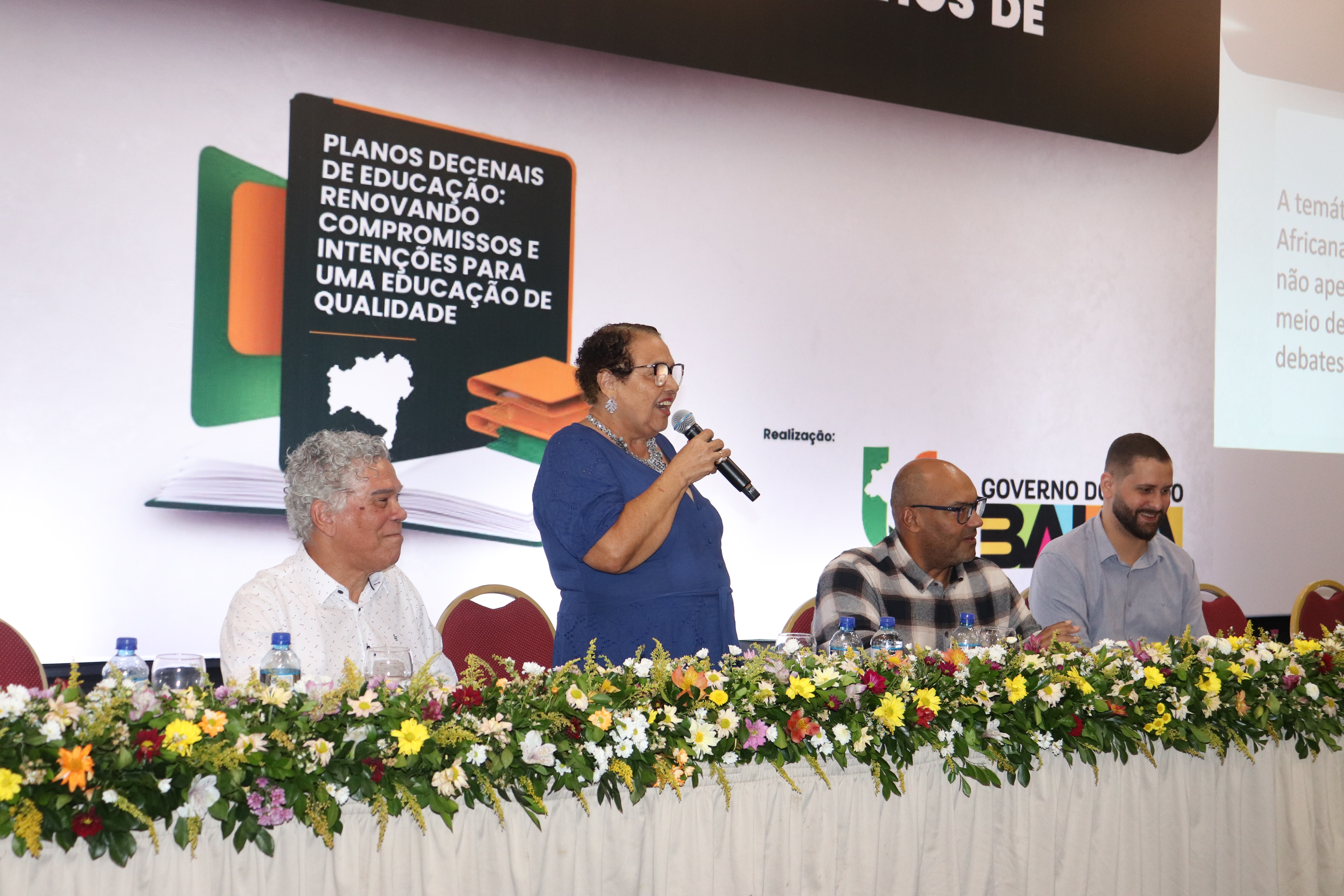 Como parte da programação, na tarde da quinta-feira (15), o CEE-BA promoveu uma mesa sobre as resoluções estruturantes do currículo escolar, dedicada à apresentação e discussão de suas normativas mais recentes, com foco nos impactos para os sistemas de ensino municipais.