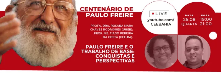 Trabalho de base é tema de encontro virtual em homenagem a Paulo Freire