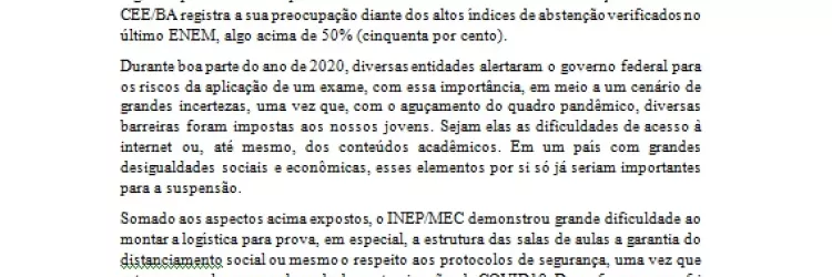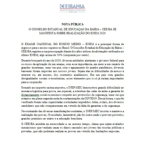NOTA PÚBLICA - CEE/BA SE MANIFESTA SOBRE REALIZAÇÃO DO ENEM 2020<br>
