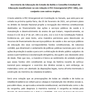 NOTA PÚBLICA - Secretaria da Educação do Estado da Bahia e Conselho Estadual de Educação manifestam-se em relação à PEC…