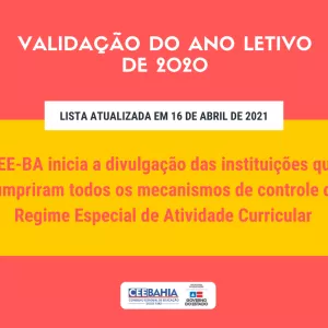 CEE-BA divulga lista de validação do ano letivo de 2020 do Regime Especial de Atividade Curricular
