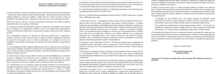 CEE-BA delibera sobre o retorno das aulas remotas e temáticas relacionadas ao direito à saúde, ao teletrabalho e ao…