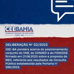 Conselho Estadual de Educação da Bahia delibera sobre o posicionamento de colegiados frente ao resultado da consulta pública…