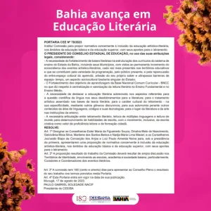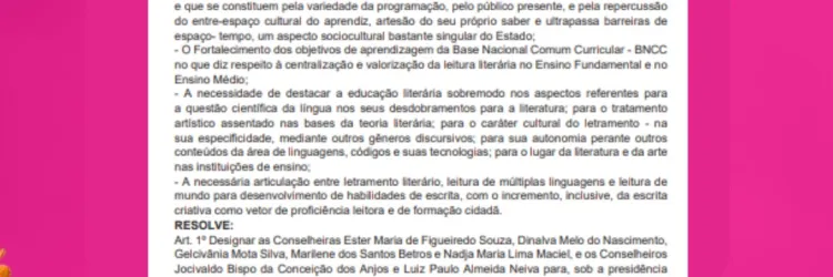Conselho Estadual de Educação publica portaria para a inclusão da educação artístico-literária, no sistema estadual de ensino…