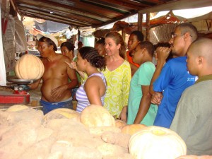 [caption id="attachment_7065" align="aligncenter" width="300" caption="Arte educadora Adelina Rebouças mostra feira para APAE. Crédito: Felipe Dieder"][/caption] Até o final do próximo mês de abril (2011) a Feira de São Joaquim é o grande campo de experimentação para o projeto Cores e Sabores que beneficia adolescentes e adultos da Associação de Pais e Amigos dos Excepcionais (Apae), com apoio do Instituto do Patrimônio Artístico e Cultural da Bahia (IPAC), autarquia da Secretaria de Cultura do Estado da Bahia (SecultBA). "Os editais do IPAC apoiam projetos da sociedade civil que realizam ações educativas e promovam os bens culturais baianos, sejam eles materiais ou imateriais", explica o coordenador de editais da Assessoria Técnica do IPAC, Layno Pedra. Segundo o técnico, os editais garantem, ainda, ferramentas mais transparentes e democráticas para a distribuição de recursos públicos. O projeto ganhou aporte de R$ 34,7 mil do IPAC depois de selecionado por comissão formada por especialistas das áreas da educação, história e antropologia. De 2009 a 2011 o IPAC vem executando 73 projetos. "Os recursos são do Fundo de Cultura do Estado e, em dois anos, de 2008 a 2010, já foram investidos mais de R$ 2 milhões", relata Pedra. Localizada entre a Avenida Oscar Pontes e às margens da Baía de Todos os Santos, em Salvador, a São Joaquim é a maior feira ao ar livre da capital baiana. Antes de 1964 quando ocorreu um incêndio, ela ocupava área próxima, alagadiça e à beira-mar, em frente à Casa Pia e Órfãos de São Joaquim – edificação de 1709 e tombada como monumento nacional desde 1941 – em local denominado Água de Meninos. Além de central de abastecimento de produtos do Recôncavo, a feira tem importância por sua dimensão sócio-cultural simbólica que detém ricas tradições, saberes e fazeres estruturantes da identidade baiana. Segundo Sandra Bahia, professora da Apae, o projeto Cores e Sabores é apoiado pela associação com cessão de espaço e estrutura interna para encontros e aulas. "Os alunos passam a conhecer a feira, atividades dos feirantes e produtos comercializados, obtendo mais vivências e conhecimentos", comenta a educadora. O projeto foi elaborado e inscrito nos editais do IPAC pela arte-educadora Adelina Rebouças e o arquiteto e museólogo Afrânio Simões Filho. Ao conhecer a feira, os alunos ganham conhecimentos sobre matemática via comercialização de produtos e a variedade do artesanato baiano, são acolhidos na inserção sócio-cultural aprimorando noções cognitivas e sensoriais fundamentais para o desenvolvimento de pessoas especiais. "Esse projeto incentiva os alunos a evoluírem, mostrando a realidade fora das salas de aula", diz Edinaldo Jesus, comerciante da feira há mais de 20 anos que presenciou uma das visitas. A Apae é filantrópica, sem fins lucrativos e presta assistência a pessoas com deficiência intelectual. As doações à Apae são revertidas para atendimento. Centros médico, educacional, formação profissional, laboratório, triagem neonatal e difusão de tecnologia são alguns dos serviços da entidade. "A Apae tem apoio do SUS, da população, convênio com empresas e recebe doações também via telemarketing”, explica Mariana Mota, professora da instituição.