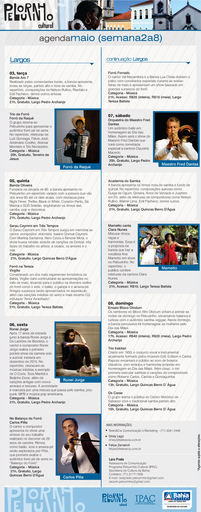 Agenda Pelourinho Cultural - 02 e 08 de Maio