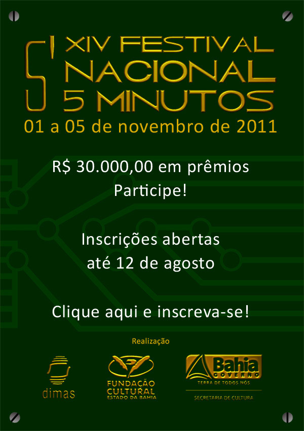 XIV Festival Nacional 5 Minutos - Inscrições abertas até 12 de agosto, participe!