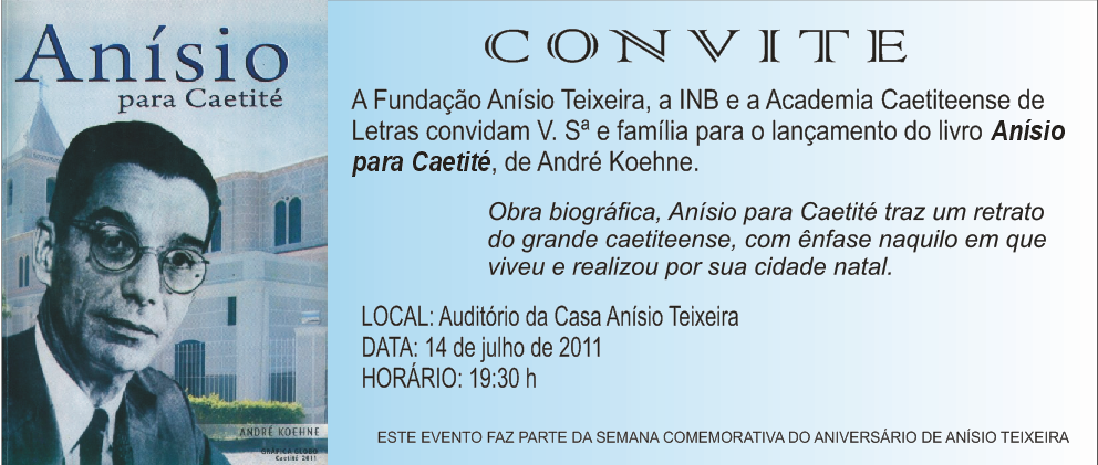 Convite para o lançamento do livro “Anísio para Caetité”