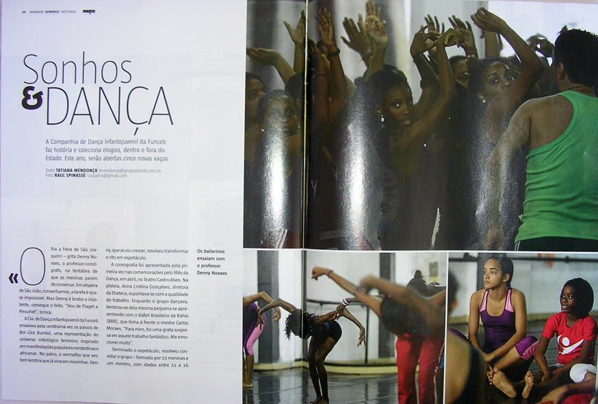 A Cia. de Dança Infantojuvenii da Funceb ensaiava pela centésima vez os passos de Boi Gira Bumbá, uma representação do universo mitológico feminino inspirado em manifestações populares nordestinas e africanas. No palco, o vermelho que vestem lembra que já viraram mocinhas. Denny, que as viu crescer, resolveu transformar o rito em espetáculo.