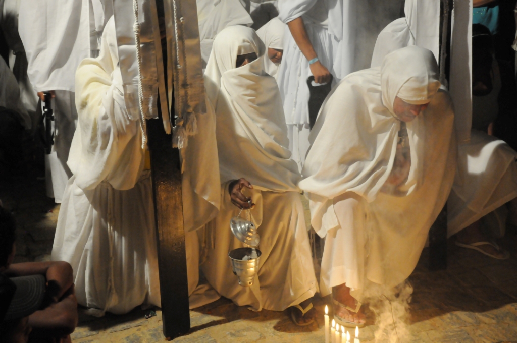 A secular festa católica conhecida como ‘Penitentes de Juazeiro’ realizada desde 1901 no município de mesmo nome, no norte da Bahia, localizado às margens do Rio São Francisco, a cerca de 500 km de Salvador, vai ganhar um videodocumentário especial de 52 minutos com depoimentos de participantes e estudiosos. O documentário foi realizado graças à parceria entre o Instituto de Radiodifusão Educativa da Bahia (Irdeb) da Secretaria de Comunicação do Estado (Secom) e o Instituto do Patrimônio Artístico e Cultural (IPAC) da Secretaria de Cultura (SecultBA). O vídeo integrará o dossiê de pesquisas realizado pelo IPAC para um possível reconhecimento dessa expressão cultural popular como Patrimônio Imaterial da Bahia. O Instituto já fez outros documentários sobre festas que se tornaram oficialmente, através de decreto, bens intangíveis do Estado, como a Festa da Boa Morte, o Carnaval de Maragojipe, o Desfile dos Afoxés e o Cortejo 2 de Julho. “A iniciativa integra o dossiê de pesquisas e atende a obrigação regimental do IPAC de difundir publicamente suas produções científicas acerca dos bens culturais baianos”, explica o diretor geral do IPAC, Frederico Mendonça. Ao se tornar ‘patrimônio imaterial’ uma manifestação cultural passa a ter prioridade nas linhas de apoio e financiamento de programas culturais municipais, estaduais, federais ou até internacionais. Existem referências dos ‘Penitentes de Juazeiro’ desde 1901. A manifestação ocorre todos os anos durante a Semana Santa, durante as sete semanas da Quaresma, 40 dias e 40 noites. A celebração começa com as ‘alimentadeiras’, senhoras que andam em fila vestidas de branco com velas acesas para rezar pelos mortos, principalmente, os que se foram de maneira trágica. O trajeto fica entre dois cemitérios e passa por sete ‘estações’ que são paradas em locais estratégicos onde permanecem por cerca de 20 minutos rezando o ‘pranto’, ou seja, demonstrações públicas de lamentação. Esse ritual acontece sempre as segundas, quartas e sextas-feiras, geralmente das 20h até a meia-noite. Na quarta e quinta-feira aparecem os ‘disciplinadores’, homens que se autoflagelam em sinal de penitência, passando nas casas do trajeto da procissão pedindo pão e sabão. Na sexta-feira da Paixão o ritual começa às 20h, sem o autoflagelo, apenas com rezas, e segue até as 4h da manhã, quando o cantar do galo anuncia, no sábado de Aleluia, que a manifestação está encerrada. O pão doado é o único alimento durante o ato de penitência. O sabão é utilizado para lavar vestes no Rio São Francisco após o término da ‘disciplina’. Uma demonstração de fé, promessa e tradição que já passa por muitas gerações. Tudo isso consta no audiovisual, além de dados, documentação fotográfica antiga e contemporânea, mapas e plantas da cidade de Juazeiro. “Ter esse vídeo é uma maravilha, nós estamos felizes da vida”, comemora a coordenadora Jesulene Ribeiro, conhecida como ‘D. Nenenzinha’. Ela é responsável por providenciar tecidos brancos, incenso, velas e o cordão de São Francisco usado na cintura pelas ‘alimentadeiras’. Foram 25 horas de gravação e 40 de edição. “O audiovisual é um dos mais eficientes suportes para preservar o bem imaterial porque a memória e a história dessas manifestações você não encontra em livros e sim nas pessoas. O registro e coleta ficam mais completos. Esse produto confirma mais uma identidade e simbologia do imaginário baiano”, enfatiza o gerente de Patrimônio Imaterial do IPAC, Mateus Torres. O pedido de reconhecimento da manifestação foi um projeto do deputado federal Jorge Khoury. Mais informações através do telefone (71) 3116.6741 e no site www.ipac.ba.gov.br. [caption id="attachment_11551" align="aligncenter" width="300" caption="Foto: Elias Mascarenhas"]