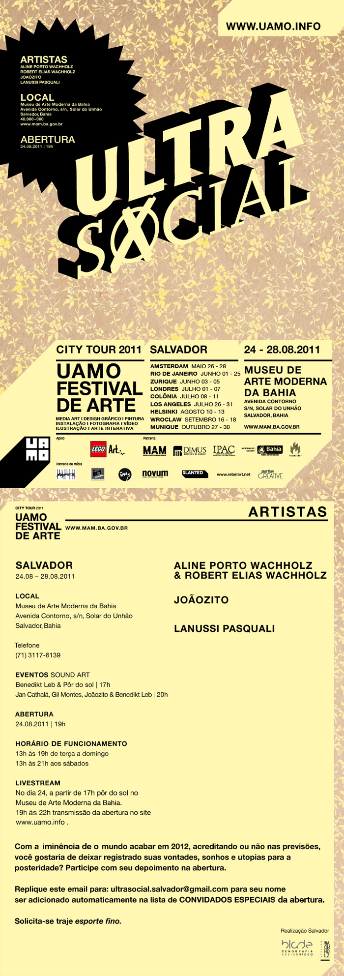 Em 2011, sob o tema ULTRASOCIAL, o festival se expande. A “UAMO City Tour 2011” acontecerá em nove cidades pelo mundo: Amsterdam, Helsinki, Los Angeles, Zurique, Colônia, Breslau, Londres, Salvador e Rio de Janeiro.