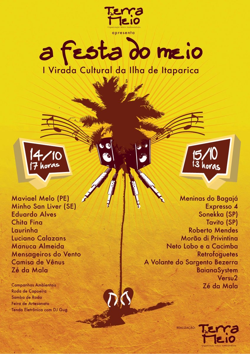 A terceira edição da Festa do Meio é realizar a primeira Virada Cultural da Ilha de Itaparica, que será também o primeiro evento desse porte na Bahia, com mais de 30 horas de apresentações numa variedade de ritmos, cores e sabores, além de consolidar a data no calendário anual dos grandes eventos estaduais. Nesse caldeirão diversas tendências estarão representadas, como poesia, capoeira, teatro de rua, artesanato, gastronomia e música (samba-de-roda, chula, rock and roll, frevo, jazz, surf music, rockabilly, reggae, chorinho, black music, samba-rock, blues, hip hop, rap, samba, música eletrônica, MPB e forró pé de serra).
