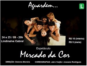 SINOPSE: O espetáculo “Mercado da Cor” faz um relato poético, político artístico, sobre as questões étnicas afro - brasileiras, apropriando-se dos elementos das artes cênicas e da música, como estratégias para provocar o pensamento critico. No primeiro ato, a obra expõe a situação do negro sem contudo resvalar para o apelo das lembranças escravagistas. Através da contemporaneidade, traça um paralelo do passado com o presente. No segundo ato ele apropria-se das tradições culturais para estabelecer um elo com a força e a beleza de uma cultura que mesmo sufocada e ou aparentemente aprisionada, permeia e fundamenta as tradições culturais do país. O espetáculo finaliza com uma declaração de paz, uma celebração holística de comunhão entre as diferentes culturas e etnias.