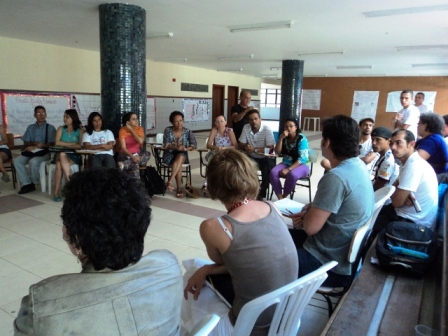 No turno vespertino, foram explicitadas as atribuições, estruturas administrativas e principais projetos da FUNCEB e da SecultBA enquanto órgãos públicos. Depois, formaram-se grupos divididos pelas áreas de atuação, que se reuniram com os dirigentes das linguagens específicas, para uma conversa mais próxima acerca de suas particularidades. Cada coordenador pôde conhecer as demandas e discutir sugestões com aqueles que atuam na produção cultural de Alagoinhas e região.