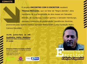 No dia 16, às 18h, o alemão Thomas Meinecke, participa do projeto Encontro com o Escritor, na Biblioteca Pública do Estado da Bahia, já o baiano Marcos A. P. Ribeiro, participa do projeto no dia 22, no mesmo local e horário.