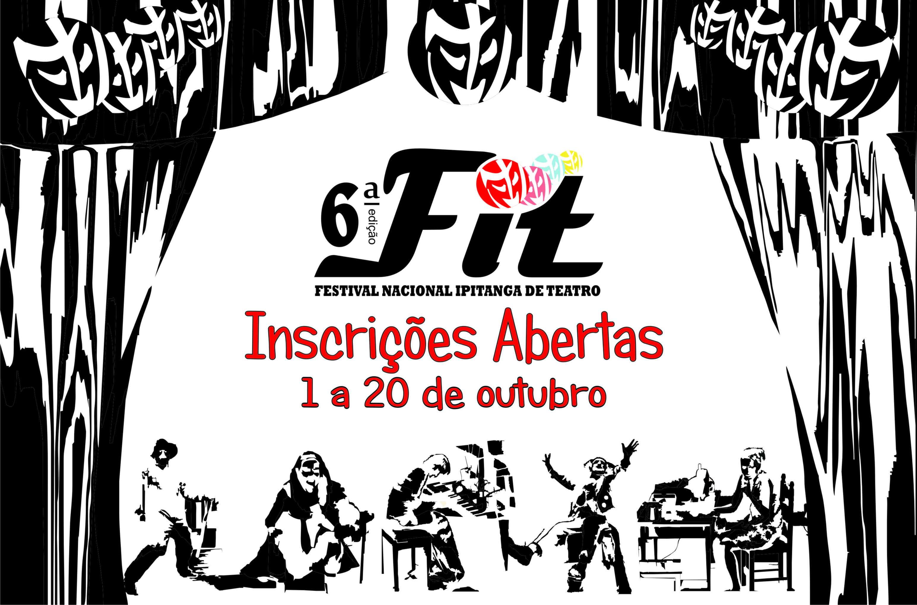 Estão abertas as inscrições de 1 a 20 de outubro, para a 6ª Edição do Festival Nacional Ipitanga de Teatro, que será realizado na cidade de Lauro de Freitas, de 21 a 26 de novembro. A Ficha de Inscrição e o regulamento estão disponíveis através de solicitação no seguinte e-mail: