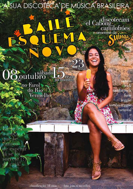 Começo do mês é legal. Dinheiro no bolso e um mês inteirinho para ser descortinando. É por isso que o Baile Esquema Novo pulou setembro e fez uma forcinha pra acontecer no dia 08 de outubro, no sábado de sempre, no Farol do Rio Vermelho - que agora é a considerada a casa do evento - e com a especialíssima participação dos meninos da banda Suinga. Para quem ainda não conhece a festa, é música brasileira de todo tipo, da maior variedade, e prezando sempre pela qualidade e pelo inusitado que é curtir uma salada de ritmos e gêneros musicais por mais de 6h de pista, a 15 reais. Legal, né? Os amantes do picolé e do sorvete de cajá, geralmente, amam a Suinga, banda que inspirou a criação do cartaz picoletado e que tem uma pegada alto astral pós-axé, neo-remelexo, que é delícia. A cara do Baile. Diego Fox e Marceleza Castilho discotecarão pela primeira vez. Estão morrendo de medo, mas não precisam temer, vai dar tudo certo: o normal no Baile é os estreantes arrasarem. Quem inventa Miniminina e Pepeu no Mar, certamente sabe o que é diversão. Camilofróes e el Cabong, os mantenedores e organizadores da fuzarca tropical, trarão antigas novidades. Como assim? Vão, os dois, buscar artistas que não são necessariamente novos, mas que eles mesmos nunca tocaram - ou tocaram muito pouco. Zé Cafofinho, Mestre Ambrósio, Barbatuques, Garotas Suecas, Di Melo, Gloom, coisas assim, muito boas, e muito divertidas. Os hits de cantar juntos seguem garantidos. Completam o clima de festa Brasil, imagens da cinemateca nacional pululando no telão, Heinekens verdinhas no salão, remediados ar-condicionados refrescando a multidão, rock, samba-rock, black, funk e quem sabe até um samba-canção. O Baile é festa para quem gosta de se divertir, dançar e sorrir até de manhã.