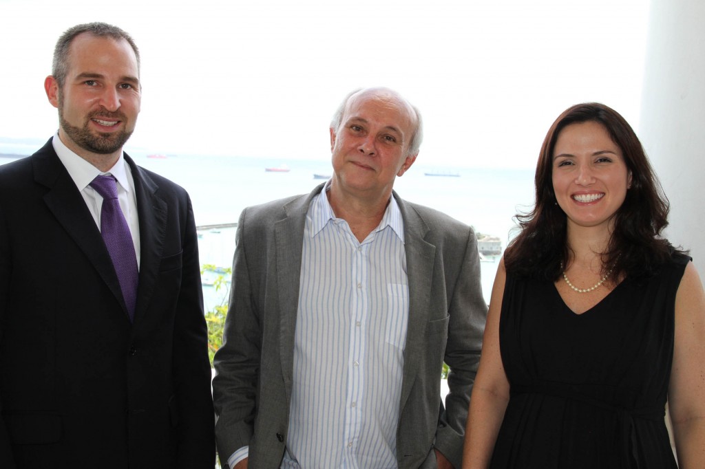 [caption id="attachment_14160" align="alignleft" width="387" caption="Albino Rubim ladeado pelos diretores da Fagga Eventos, Gabriel Palumbo e Tatiana Zaccaro"]