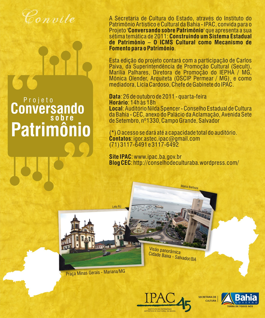 "ICMS Cultural na Bahia" - Projeto Conversando Patrimônio