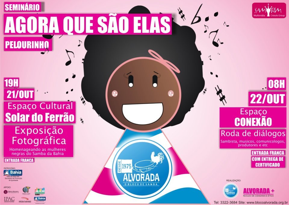 Pensando em ampliar espaços de discussões sobre o samba na Bahia, o Alvorada traz de volta, a Roda de Diálogos que debate a relação do samba com alguns aspectos da cultura baiana, nos dias 21 e 22 de outubro. Com o título “Agora que são elas” o encontro deste ano, põe em pauta a presença feminina em diversos espaços do samba, seja na música, divulgação, com as personagens ou na produção e etc.