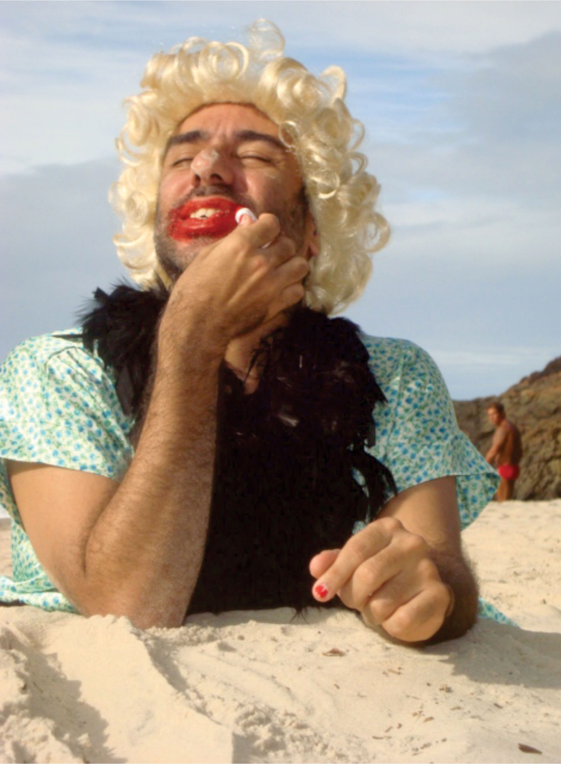 Sinopse: Ah, Se Eu Fosse Marilyn! é uma proposta artística de intervenção urbana, criada por Edu O. em parceria com a Cia Dezeo-Ito, a ser realizada em praias de Salvador, que pretende refletir sobre o que nos tornamos com a passagem dos anos. Aquilo que chamamos de “chegar lá” e corresponde aos desejos antigos. Quando sabemos que chegamos lá? Quando alcançamos os sonhos? Um homem travestido de Marilyn Monroe e assim como Winnie, personagem de Samuel Beckett em Dias Felizes, enterrado até a cintura, consumido pela areia, lendo um livro e fazendo ações cotidianas, do dia-a-dia doméstico, como escovar dentes, pentear cabelos, se maquiar. Olha-se no espelho e não vê aquele que pretendia ser, mas gosta do que é. Cabelos falsos, loiros, boca borrada, livro na mão. Tornou-se aquilo que consumiu, absorveu.