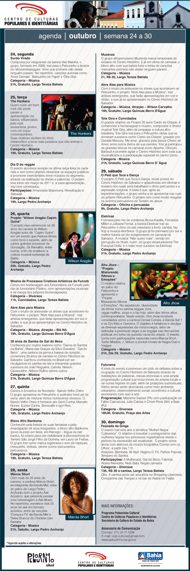 Agenda Cultural - Centro de Culturas Populares e Identitárias - 24 a 30 de Outubro