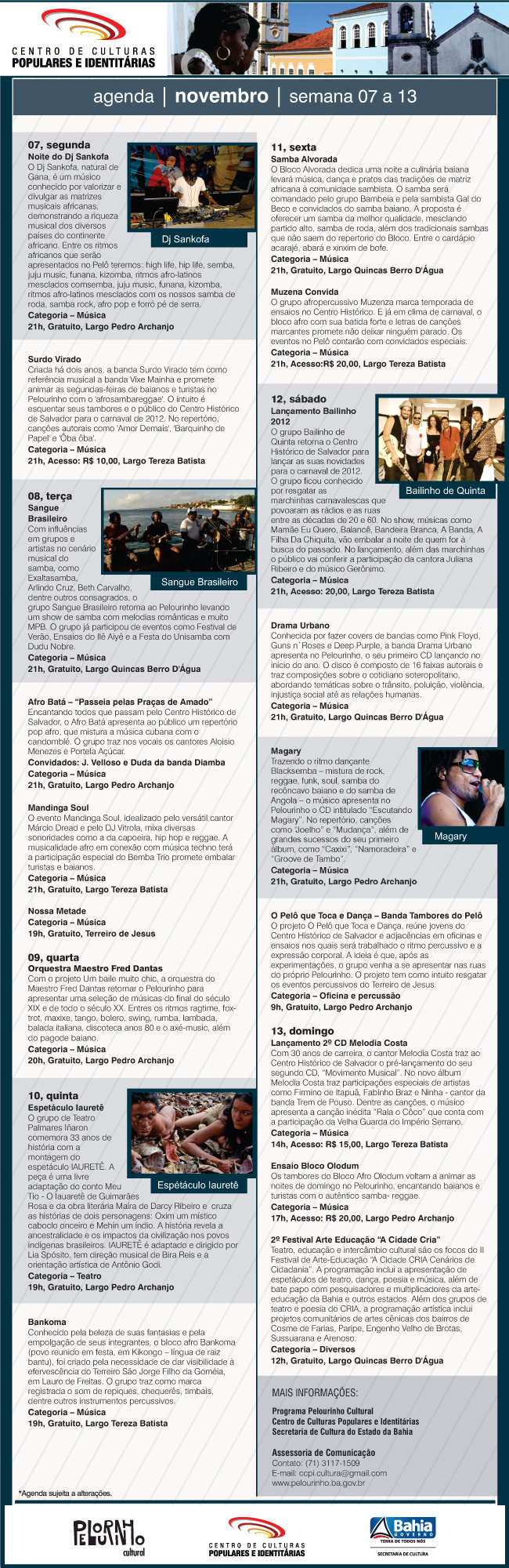 Agenda - Centro de Culturas Populares e Identitárias (CCPI) - 07 a 13 de Novembro