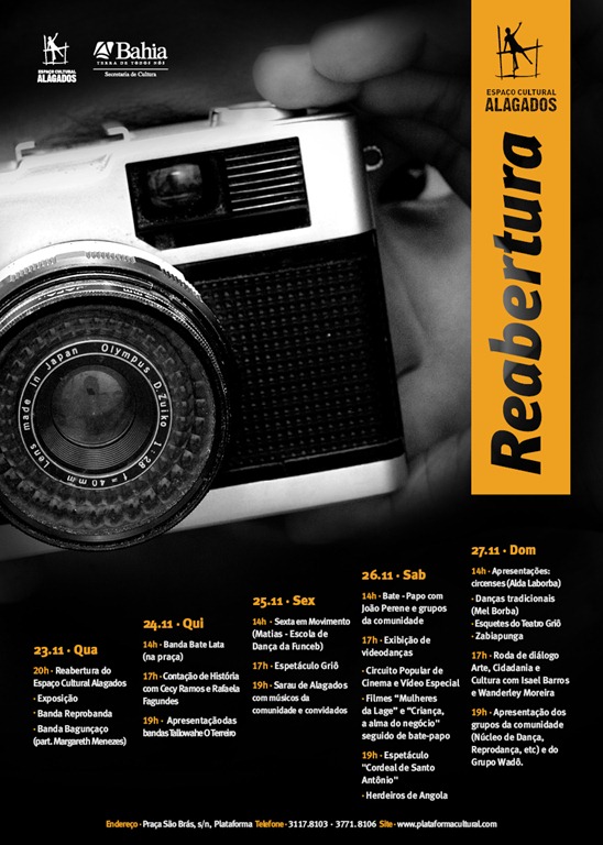 Alegria e movimento foram a marca da noite do último dia 24 no bairro do Uruguai. O clima festivo contagiou as cerca de 200 pessoas que fizeram questão de comparecer a reabertura do Espaço Cultural Alagados. Os representantes da comunidade presentes demonstravam orgulho de estarem ali, na reabertura do espaço, depois de um ano fechado para reformas. “O dia de hoje é resultado da luta desta comunidade. São vocês que merecem os parabéns”, declarou o secretário de Cultura, Albino Rubim. “Este espaço é importante pelo apoio a comunidade. Nossa luta é pela cultura, para reduzir a violência” declarou a coordenadora do espaço, Jamira Alves, que não escondia a emoção e a felicidade do momento. A reabertura foi marcada por muita música e por uma exposição de fotos, resultado das oficinas realizadas pelos jovens moradores do Uruguai e de bairros vizinhos como Massaranduba, Jardim Cruzeiro e Baixa do Petróleo. A primeira atração da noite foi a Banda Repobanda, uma das mais antigas a utilizar o espaço. Formada por jovens entre 14 e 19 anos, a banda se apresentou no palco da área aberta, possibilitando as dezenas de pessoas que estavam no lado externo, se divertirem também. A segunda atração da noite foi a banda Bagunçaço, a mais conhecida do bairro, e que tocou várias músicas de seu repertório. A banda se apresentou na sala principal do Espaço Cultural Alagados e convidou a cantora Juliana Ribeiro para participar da festa. Juliana colocou a platéia para cantar antigos e novos sucessos de compositores baianos. Outra convidada do Bagunçaço foi a cantora Margareth Menezes que interagiu com a platéia e fez questão de mandar um recado para os mais jovens: “Mesmo quando a gente tem talento para alguma coisa, é preciso estudar e aprender mais. Sem os estudos eu não chegaria onde cheguei”. Local de apoio Os jovens foram presença marcante na reabertura do Espaço Cultual Alagados. O motivo é simples: a maioria utiliza o espaço para participar de atividades em grupos culturais. O espaço ajuda a ampliar os horizontes destes jovens, dando-lhes novas perspectivas através das oficinas, cursos e várias outras atividades desenvolvidas no local. “O Espaço Cultural Alagados é muito importante para todos nós. É uma forma também de nos livrar das drogas e da violência. Todos os meus amigos estão aqui, estamos nos livrando do crime e da morte”, afirmou o jovem Hebert Silva que a três anos faz parte do grupo Vem Chamegar. Membro do Grupo de Mulheres Ativa do Uruguai, a senhora Vivaldina Lopes salientou sobre a importância do espaço para a sociedade citando o exemplo de sua própria família. “Participo há anos e a reforma foi ótima. Tenho filhas e sobrinhas que também utilizam o espaço, estamos todos muito felizes”, disse.