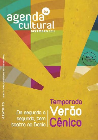 O verão está chegando e a última Agenda Cultural do ano destaca a Temporada Verão Cênico, uma iniciativa de difusão do Teatro da Bahia que realiza vasta programação de espetáculos, teatro de rua e teatro amador em diversas cidades do estado. Também na área de teatro, vale conferir Outra Tempestade, 17ª montagem do Núcleo de Teatro do Teatro Castro Alves, na Sala do Coro do TCA. Em Jequié, o III Festival de Teatro do Sudoeste Baiano promove a produção teatral do interior baiano. Outros grandes eventos têm destaque nesta edição: o XI Mercado Cultural explora o tema “A Cada Passo”, revelando investir no desenvolvimento cultural. O XVII Festival de Música Instrumental da Bahia acontece no Teatro Vila Velha. O Museu de Arte Moderna da Bahia (MAM-BA) inaugura três novas exposições, dos artistas Almandrade, Sonja Alhaüser e Rubem Valentim. A Universidade Federal do Recôncavo da Bahia (UFRB) sedia o II CachoeiraDoc – Festival de Documentários de Cachoeira. OQuarta que Dança 2011 chega às suas duas últimas semanas de apresentações. Na seção Manifestações da Cultural Popular, conheça a Marujada de Curaçá. Em Mestres da Cultura, o educador Nelson Pretto e sua contribuição para a inclusão sociodigital. Nas páginas de Intervalo, o tema é “Virada” e reforça nossos desejos de que 2012 seja um ano feliz para a Bahia. Boas Festas! O PDF da Agenda Cultural Bahia de dezembro de 2011 está aqui. Acesse e divirta-se! Acompanhe o site www.agendacultural.ba.gov.br, que disponibiliza ainda mais alternativas culturais da Bahia, com diversas opções de busca para que você encontre o que procura.