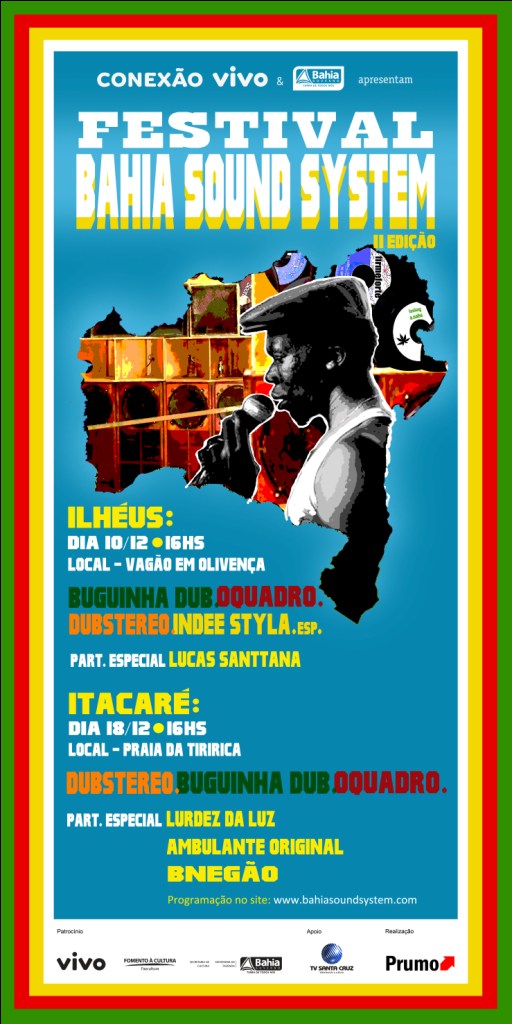 A segunda edição do Festival Bahia Sound System (BSS) acontece em Dezembro e vai movimentar as cidades de Ilhéus e Itacaré com atrações que tem em comum a referência nos sistemas de som jamaicanos. Em Ilhéus, o Festival será realizado dia 10, no Vagão, em Olivença. Em Itacaré, será dia 18, na praia da Tiririca. O evento começará sempre às 16h e a entrada será franca.
