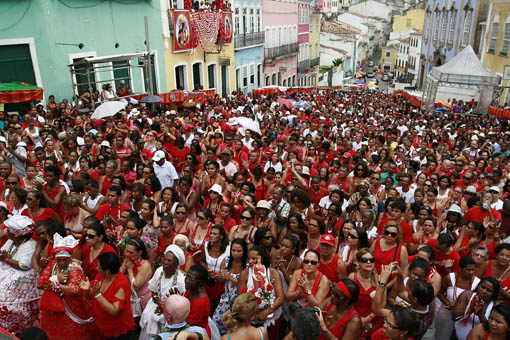 Acarajés, abarás, carurus, uvas, pão, atabaques, zabumbas. A festa que abre o calendário dos eventos religiosos da Bahia é a maior festa popular viva do estado e ganhou ao longo de sua história características que misturam a fé católica com as simbologias típicas do candomblé. A Santa Bárbara, também cultuada como Iansã, levou ao Centro Histórico de Salvador centenas de fiéis que pintaram o Largo do Pelourinho de vermelho, rezaram, cantaram e se emocionaram em louvor à santa dos raios, da força e protetora dos bombeiros. O evento, que recebeu o apoio do Centro de Culturas Populares e Identitárias (CCPI), órgão da Secretaria de Cultura do Estado da Bahia (Secult/BA), foi marcado por manifestações ímpares e presenças ilustres, como a do Arcebispo Primaz do Brasil, Murilo Krieger, que realizou a primeira missa popular de sua vida de padre. Para o Arcebispo, o fato da festa ter características fortes do candomblé, em nada influencia a fé dos devotos. “É importante buscarmos entender as diferenças. Isso se chama tolerância. Além do mais, o que realmente importa é a demonstração de fé que vimos aqui”, explica. A festa teve diversas manifestações de sacrifícios, como foi o caso do aposentado Ermínio Santos Viera, 78 anos. Recém-operado do joelho e sofrendo da osteoporose, permaneceu durante todas as atividades, inclusive na procissão. Apoiado pelas duas filhas pelos braços, seguiu todo o trajeto e ao final afirmou que faria tudo de novo. “Há mais de 30 anos participo e este ano tive que vir em sacrifício, pois a Santa Bárbara operou muitos milagres na minha vida. Estou vivo até hoje graças a ela”, disse. A manifestação de fé e amor à santa pôde ser vista de várias formas. A auxiliar de serviços gerais, Benedita Maria Silva Pereira, estava ali para agradecer pela formatura do filho literalmente de joelhos. “Para nós que viemos de uma origem humilde, tudo é feito com muito sacrifício. Meu filho agora é dentista e apesar de todos os problemas que tivemos, Santa Bárbara sempre operou milagres em nossas vidas”, explica. A festa é considerada por muitos como a mais popular da Bahia, onde a religião e o lado profano têm o seu lugar. Para o Secretário de Cultura do Estado, Albino Rubim, o evento é de uma beleza inigualável. “A festa de Santa Bárbara é repleta de simbologias e sincretismos. No momento em que precisamos rever nossas festas populares e fortalecê-las, a de Santa Bárbara é um ótimo exemplo de resistência e beleza, um verdadeiro modelo a seguir”, pontua. Samba e alegria. Na festa de Santa Bárbara, a parte religiosa e a parte profana é detalhadamente respeitada. Após as manifestações dos fiéis, por meio de oração, promessas e sacrifícios, o público que continuou no Centro Histórico iniciou os festejos com muita música e cerveja. O palco armado pelo CCPI, que pela manhã foi utilizado como altar, à tarde deu espaço para atrações como Jorginho Comancheiro, Afoxé Kori Nagô, Banda Didá, Ara Ketu e Ilê Aiyê, no Largo do Pelourinho; A Banda Mulherada e Bankoma no Largo Tereza Batista; Gal do Beco e Neto Balla, no Largo Pedro Archanjo e Aloísio Menezes, no Largo Quincas Berro d’Água. Durante a programação, várias atrações artísticas também se apresentaram de forma itinerante, como Swing do Pelô, Meninos do Pelô, Tambores e Cores, Filhos de Gandhy, Bandão Jurema e Bandão Status. A recepcionista Tâmara da Silva Santos diz que todo ano vai à festa e acompanha todos os momentos. “Gosto de tudo e agora à tarde quero me divertir, dançar e ficar com meus amigos. Que a nossa festa seja de muita paz”, conclui. Centro de Culturas Populares e Identitárias (CCPI) - órgão da Secretaria de Cultura do Estado da Bahia (Secult/BA) busca através do Programa Pelourinho Cultural, além de dinamizar as ações culturais no Centro Histórico, incentivar também a produção local, por meio de promoção de eventos realizados pela comunidade. Toda a agenda de atrações do programa tem acesso gratuito ou a preços populares.