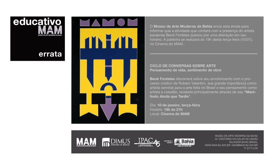 MAM-BA Modifica Horário de Palestra Com Bené Fonteles