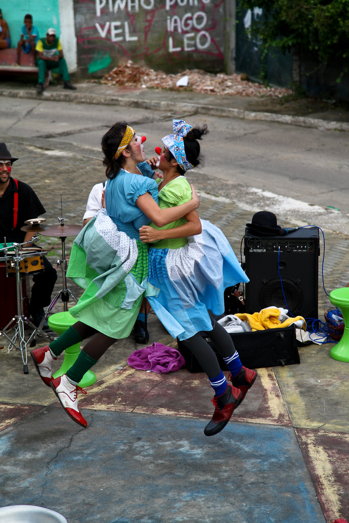 Palhaças fazem espetáculo em praça do Candeal